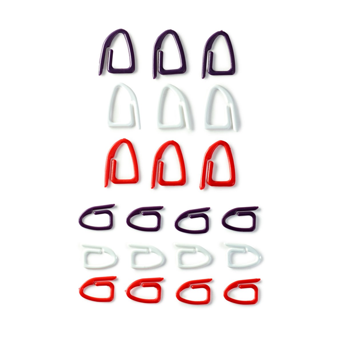 Anéis de marcação de malhas "Prym". Conjunto de 21 unidades de marcadores de plásticos em 3 cores sortidas e 2 tamanhos. A forma destes marcadores torna-os úteis tanto para crochê como para tricô.