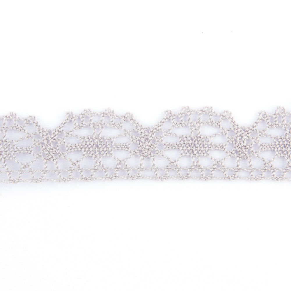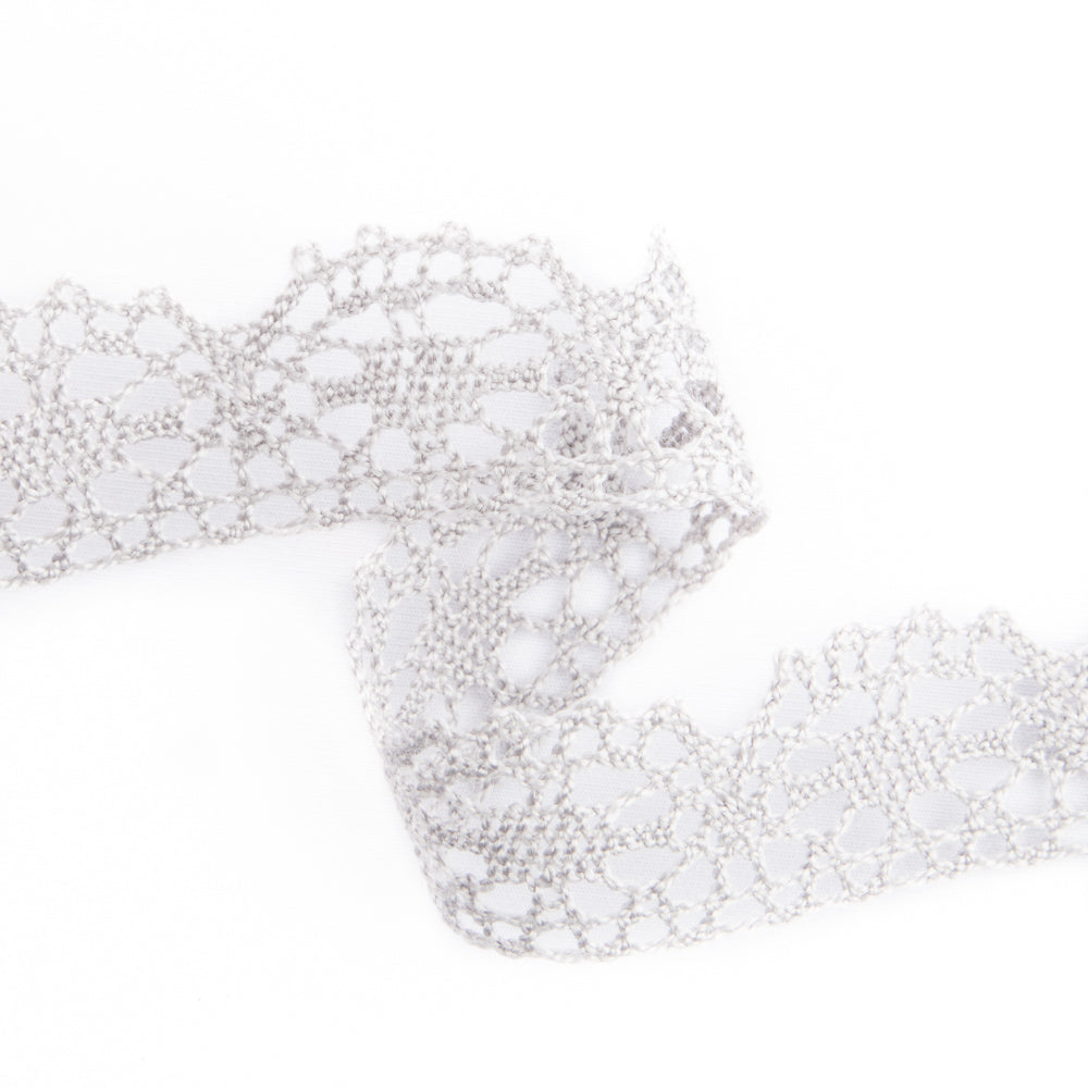 Tira de puntilla de poliéster en color gris. Tira de puntilla calada en forma de ondas de 2 cm de ancho toda del mismo color. Compra a partir de 1 metro, compra los metros de puntilla que necesites. Precio en oferta hasta agotar existencias.