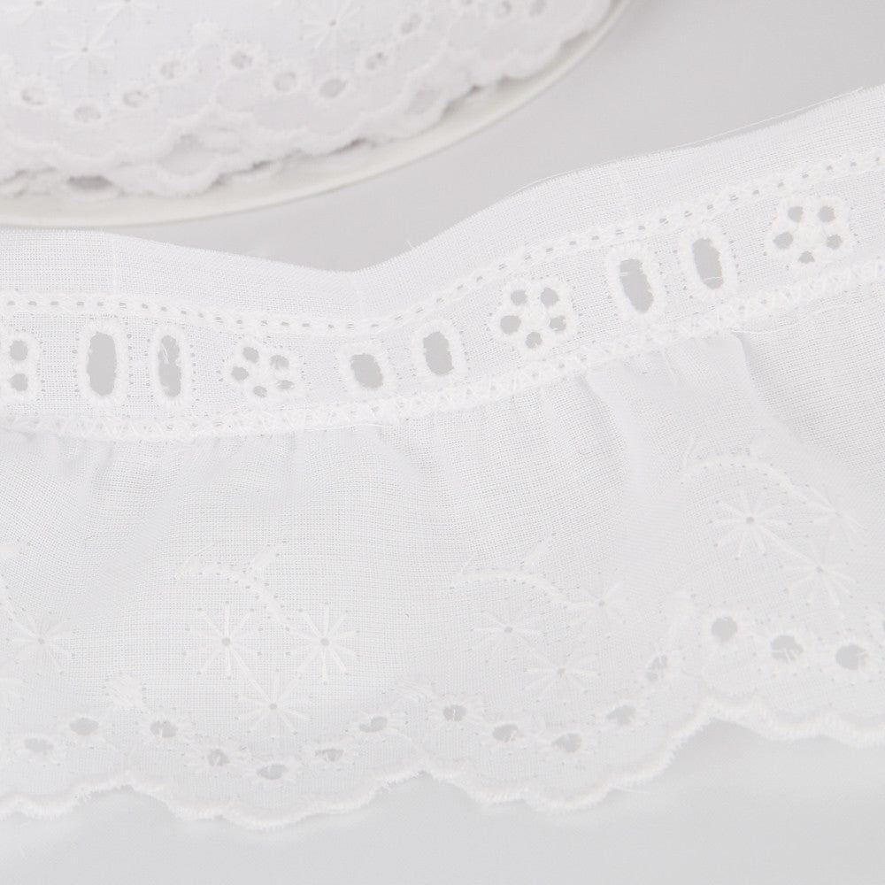 Tira de batista bordada 100% algodão. Esta tira tem 6,5cm de largura.