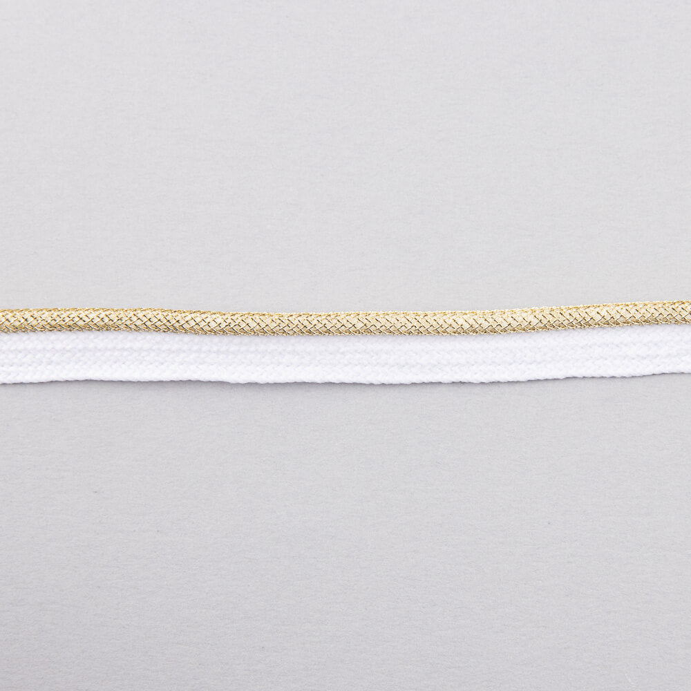 Fita trendy para dar um efeito vivo brilhante em tom ouro. Fita de 10 milímetros de largura com uma superfície para costura interna e outra para dar o efeito do vivo. Compre os medidores que você precisa a partir de 1 metro. Preço por metro.