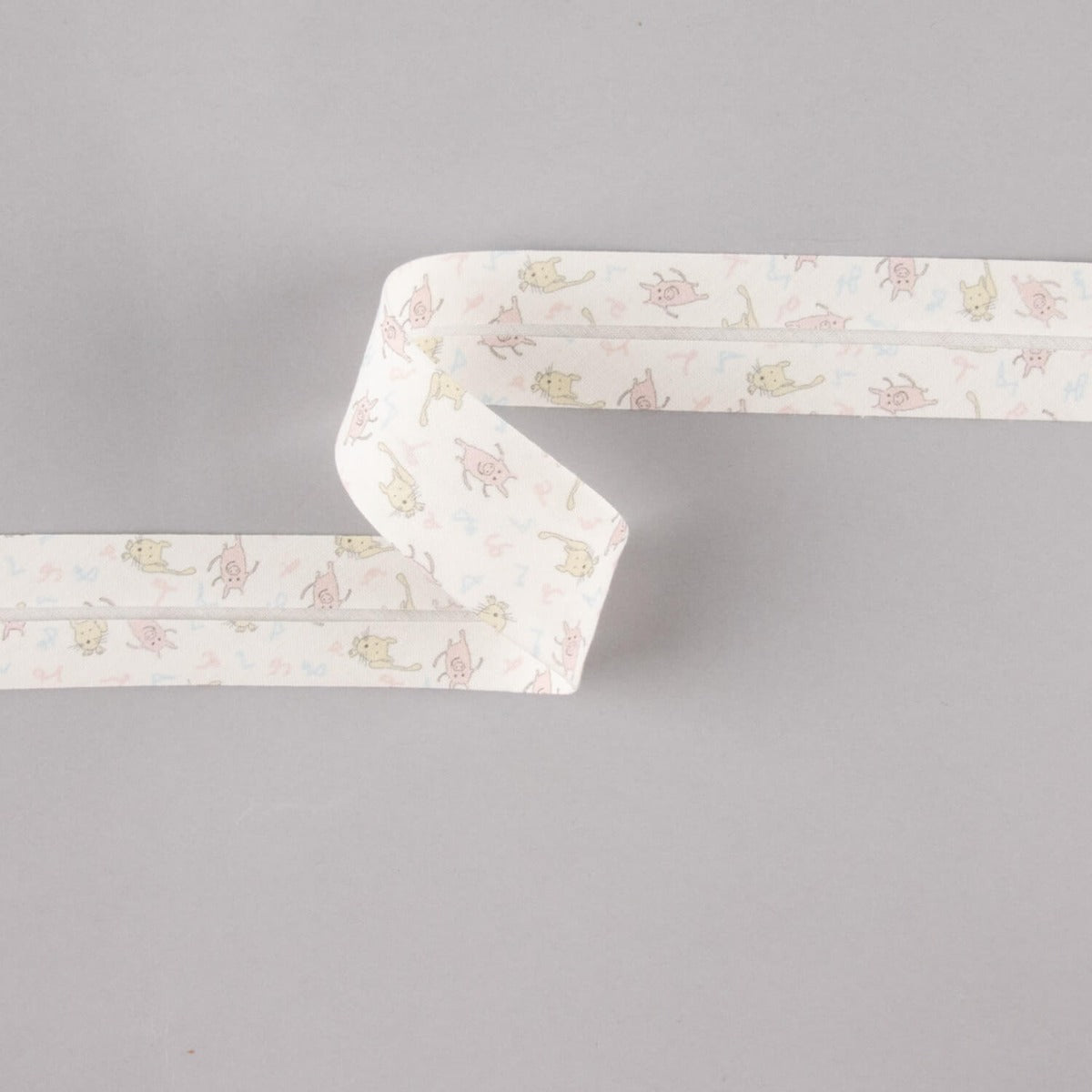 Fita Bies Porquinhos E Gatos Rosa-Creme 30 Mm
