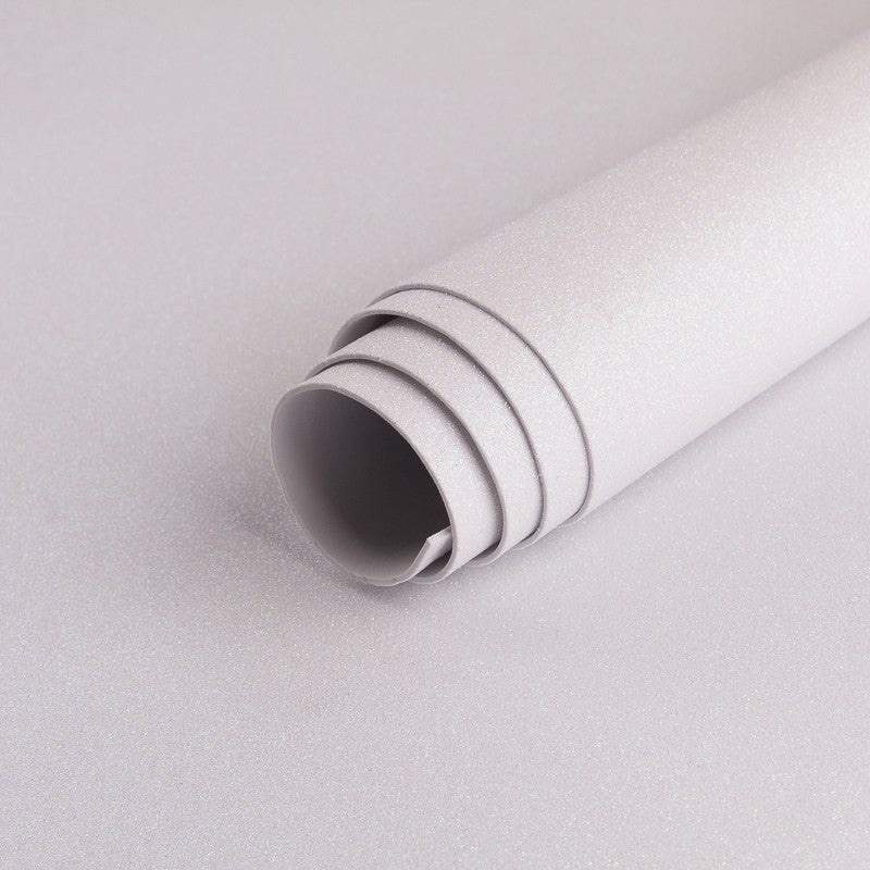 O EVA não é um tecido propriamente dito, mas é um material muito versátil. É maleável e fácil de trabalhar. Muito usado para fazer trabalhos manuais e perfeito para que as crianças desenvolvam sua criatividade. Aqui temos um EVA Branco brilhante, coberto por purpurinas.