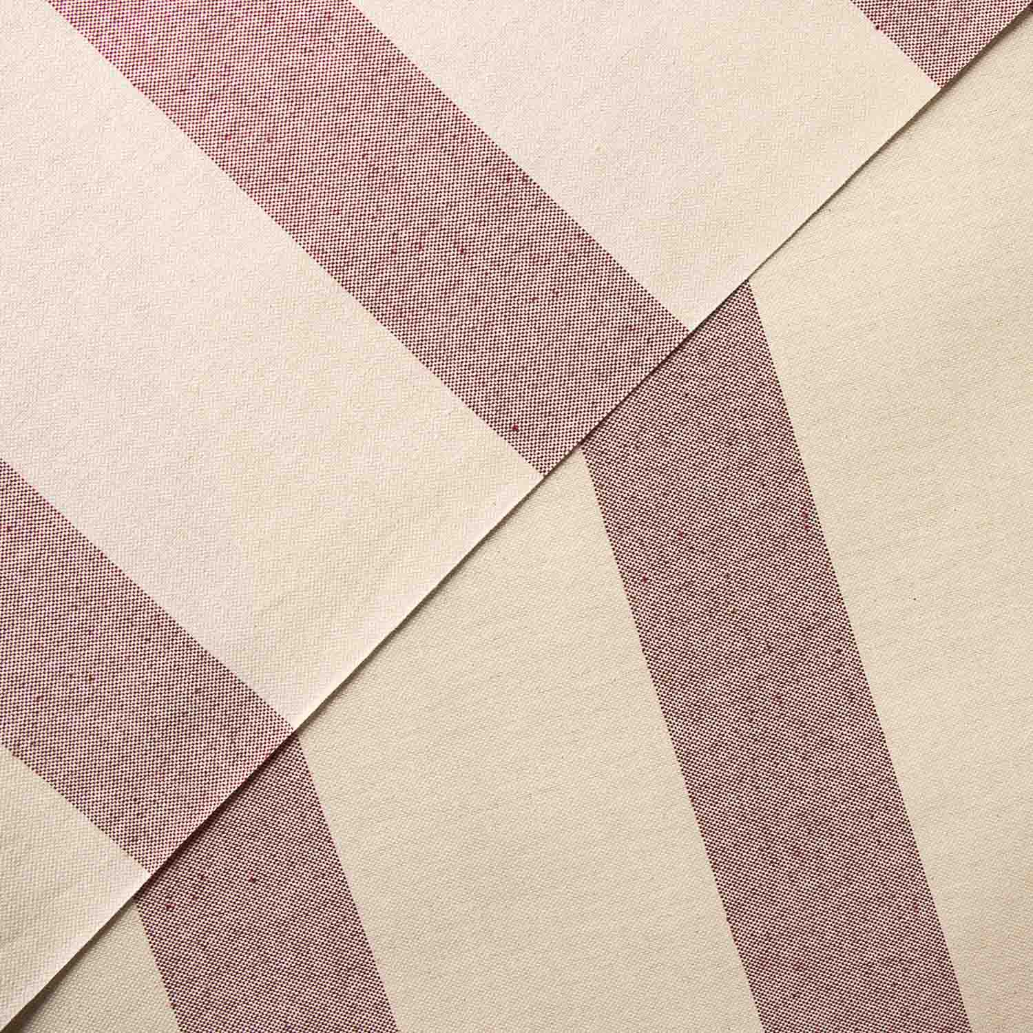 Tecido 100% algodão com revestimento de teflon com efeito saco francês e design bicolor em vermelho sobre fundo cru. Apresenta faixas vermelhas de 5,50 cm de largura que combinam exclusivamente com o tom cru do fundo, criando um estilo clássico, elegante e intemporal.
