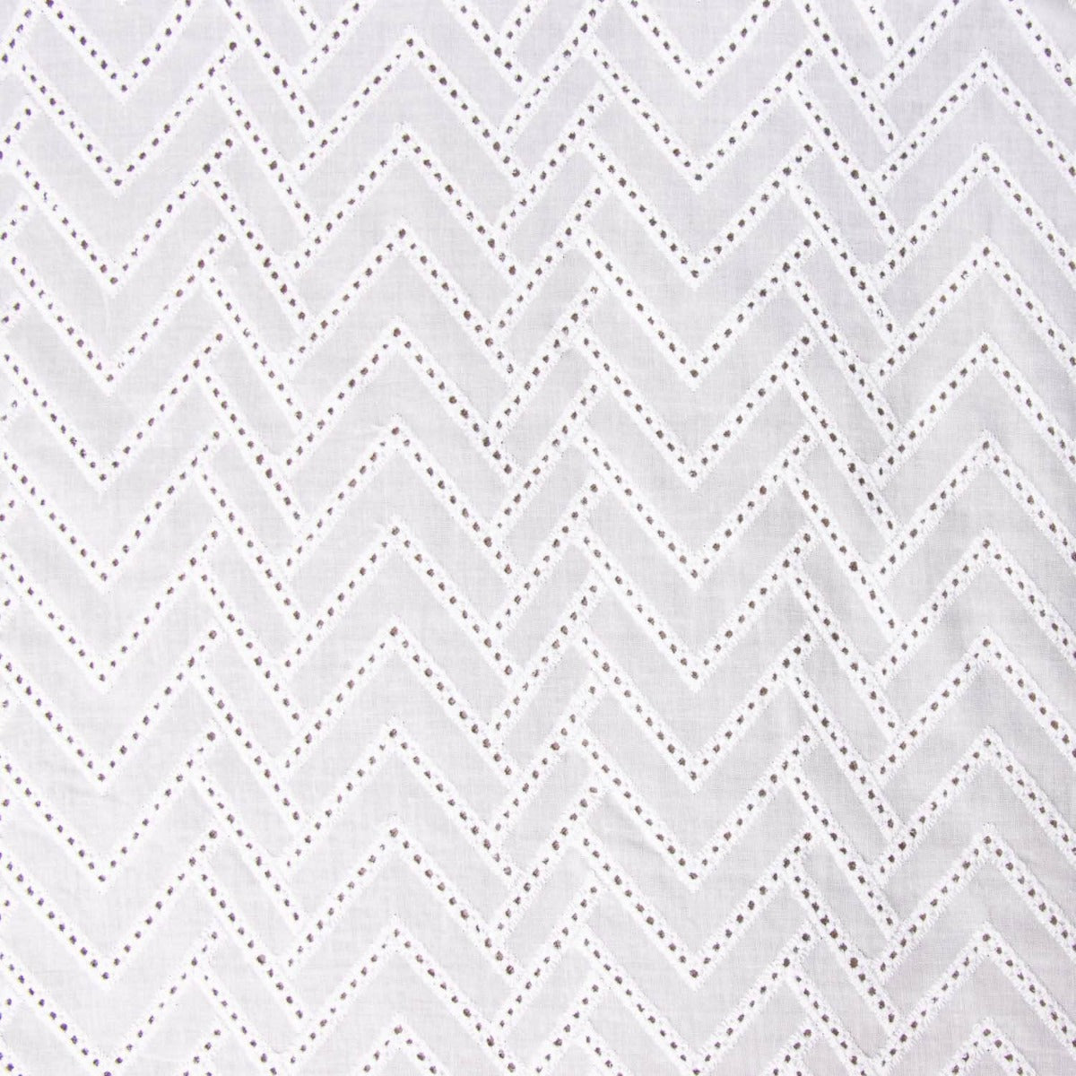 O bordado suíço Zigzag Pure Cotton é um tecido delicado, fresco e intemporal, ideal para confecções leves com um toque artesanal. O seu design em ziguezague confere textura e elegância, perfeito para peças de verão ou detalhes decorativos com um ar romântico e natural. Confeccionado em 100% algodão e com 145 cm de largura, este bordado suíço é suave, respirável e agradável ao toque. Graças ao seu bordado perfurado com padrão geométrico, permite criar blusas boho, vestidos de verão, camisas fluidas, saias evasé ou até roupa infantil com um encanto clássico. É também uma opção preciosa para detalhes em roupa de cama, almofadas ou cortinas. Dica de costura: por ser um tecido perfurado, recomenda-se rematar com costura francesa ou viés de algodão para evitar desfiar e manter um acabamento limpo e resistente.
