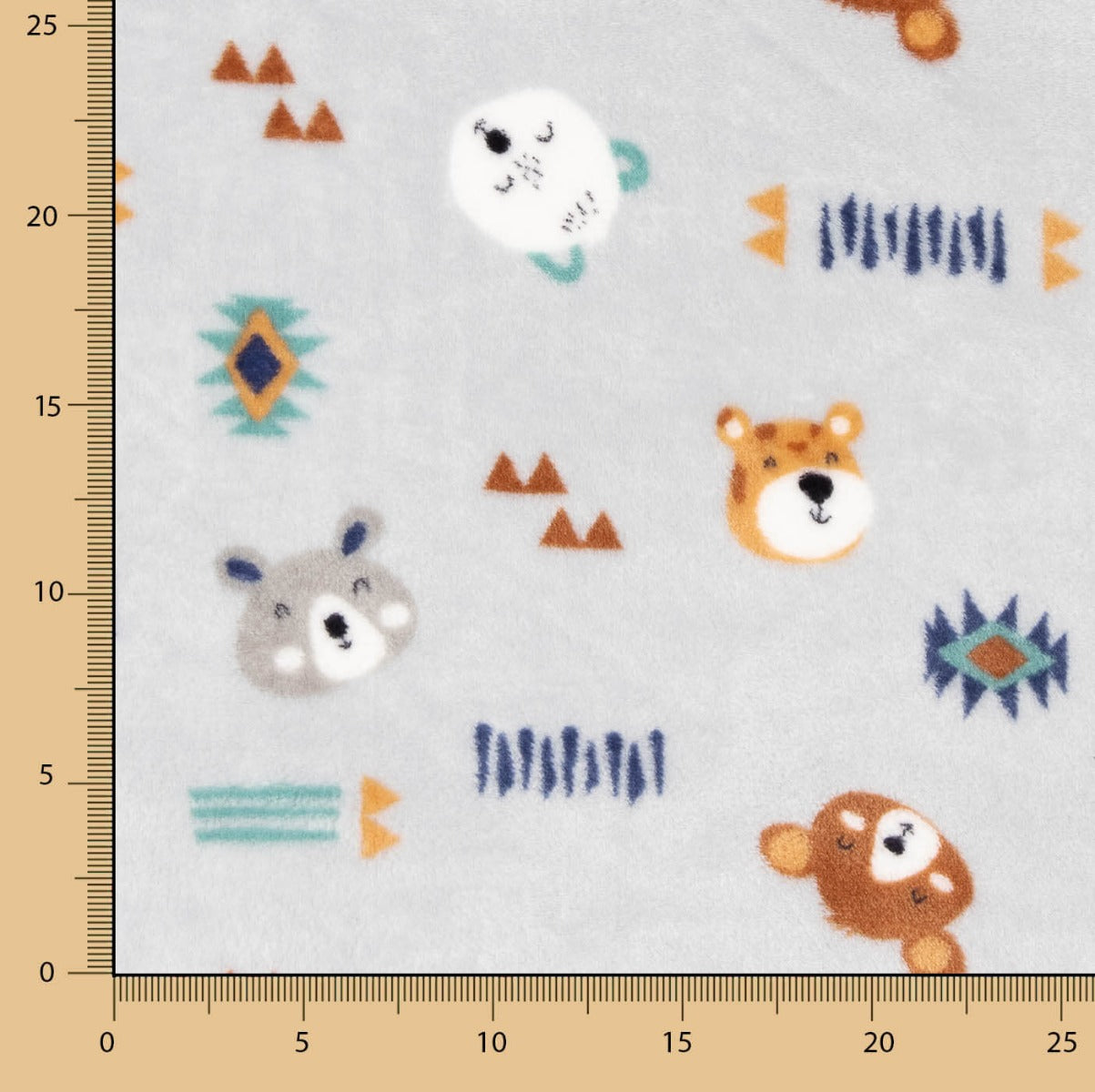 Descubre la calidez y ternura de nuestra coralina estampada “Ositos Tribus”, un tejido perfecto para confecciones infantiles y proyectos acogedores.