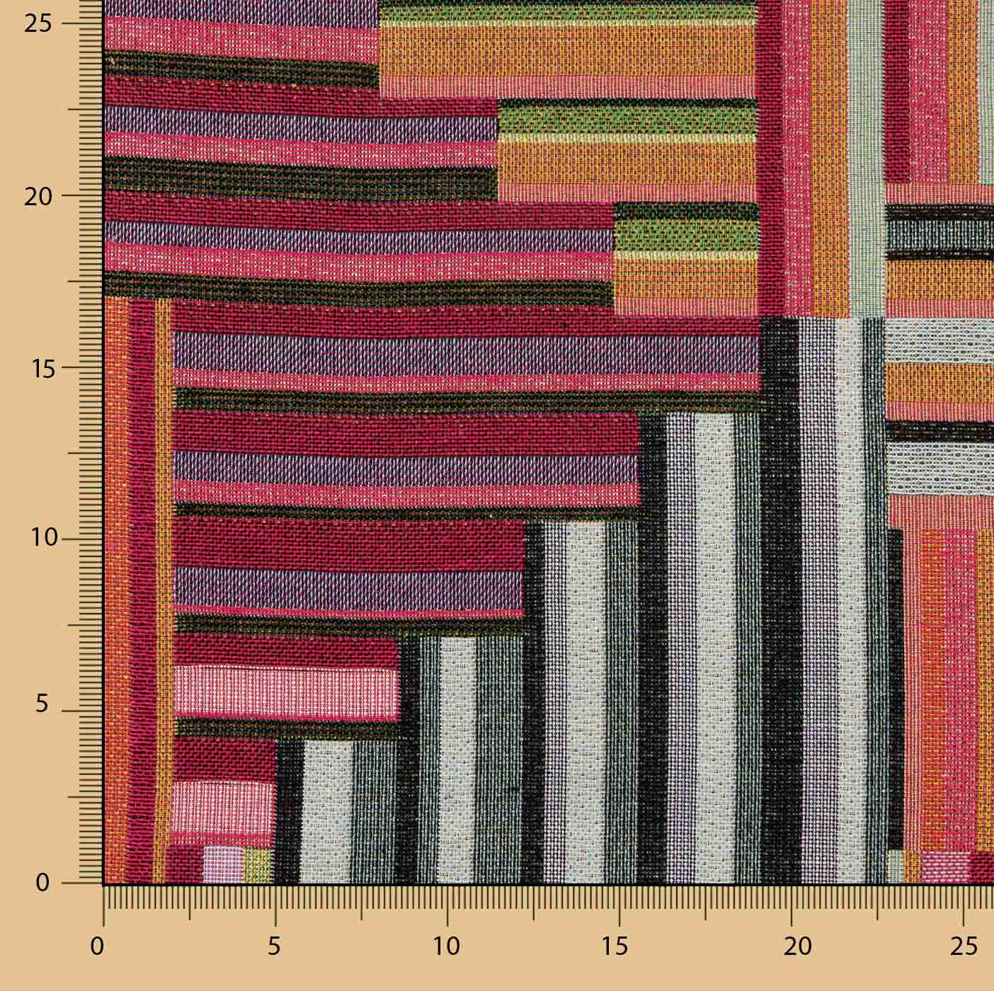 Dê um toque moderno e vibrante à sua casa com este atraente tecido gobelino chenille com estampado geométrico maxi. Suave ao toque graças à textura chenille e resistente pela combinação de algodão e poliéster, é uma opção perfeita para projetos de estofos, almofadas e cortinas. Com uma largura de 280 cm, este tecido permite cobrir grandes superfícies de forma eficiente, ideal para dar um ar contemporâneo a qualquer ambiente.