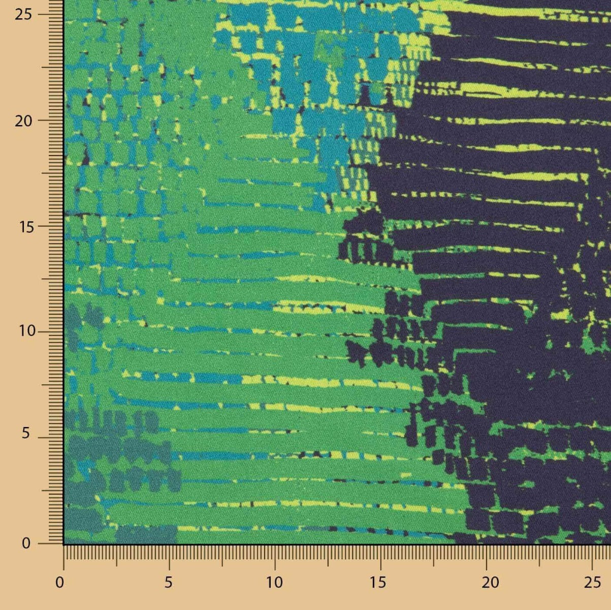 O Twill Cetim Pixel Jungle é um tecido vibrante e contemporâneo que se destaca pelo seu impressionante estampado abstrato em tons de verde intenso, azul elétrico, amarelo ácido e preto profundo. O seu design pixelado com efeito escamado confere-lhe dinamismo visual e um ar moderno, ideal para quem procura peças únicas com muita personalidade. Com 150 cm de largura e composição 100% poliéster, este tecido combina a textura característica do twill com um acabamento acetinado opaco que lhe confere um brilho suave e um caimento fluido e elegante. É perfeito para confecionar vestidos com estrutura, saias largas, calças palazzo, blusas chamativas, quimonos modernos ou até peças de estilo urbano com um toque artístico. Dica de costura: use uma agulha fina (Microtex 70-80) e calcador de teflon ou para tecidos delicados. Isto ajudará a evitar que o tecido fique preso ou marque e a manter o seu acabamento acetinado impecável.
