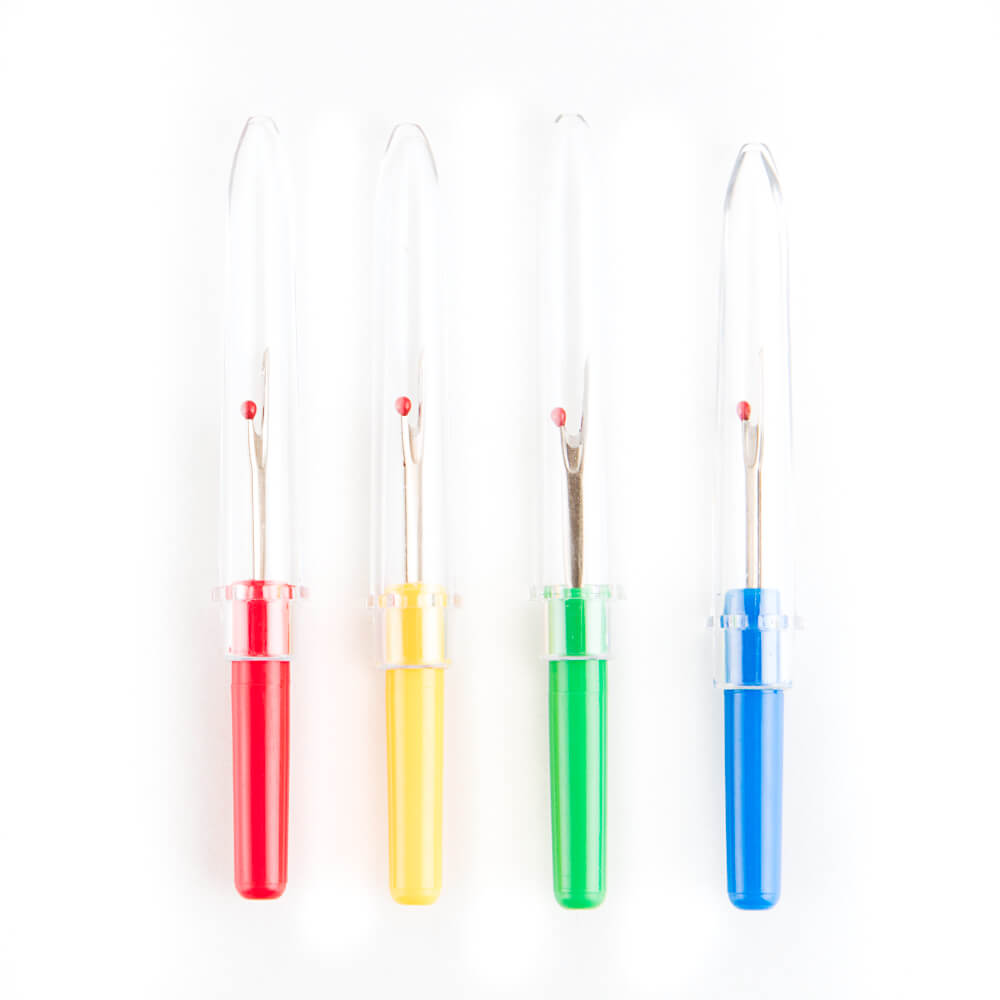 Removedor de fios pequeno com cabo colorido. Ideal para costuras minúsculas e armazenamento sem ocupar espaço. Permite-nos desmarcar uma costura mal feita ou abrir buracos de botão para terminar o vestuário. Tamanho 6 cm com rolha de segurança de 9 cm. Escolha a cor do cabo, preço por unidade.