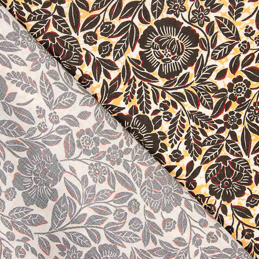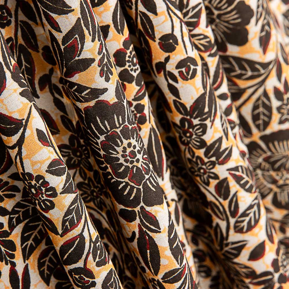 Tela de viscosa estampado modelo flor Alfajaroz, tela con caída, muy fluida y sedosa.