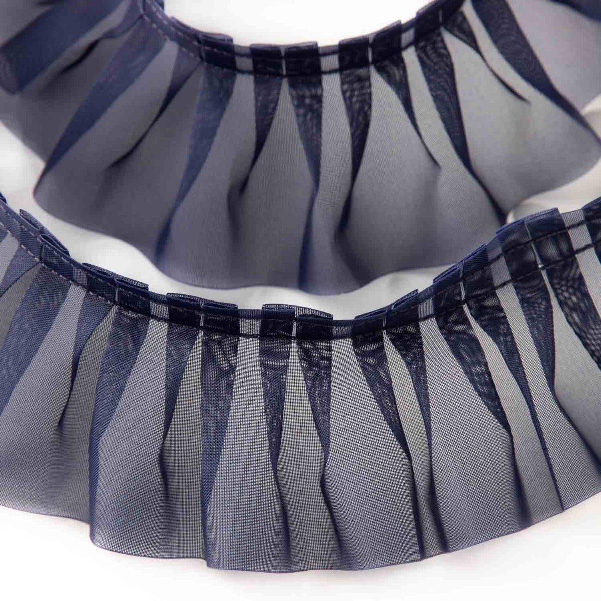 Fita plissada de organza 100% poliester de largura 6cmen cor azul marinho.