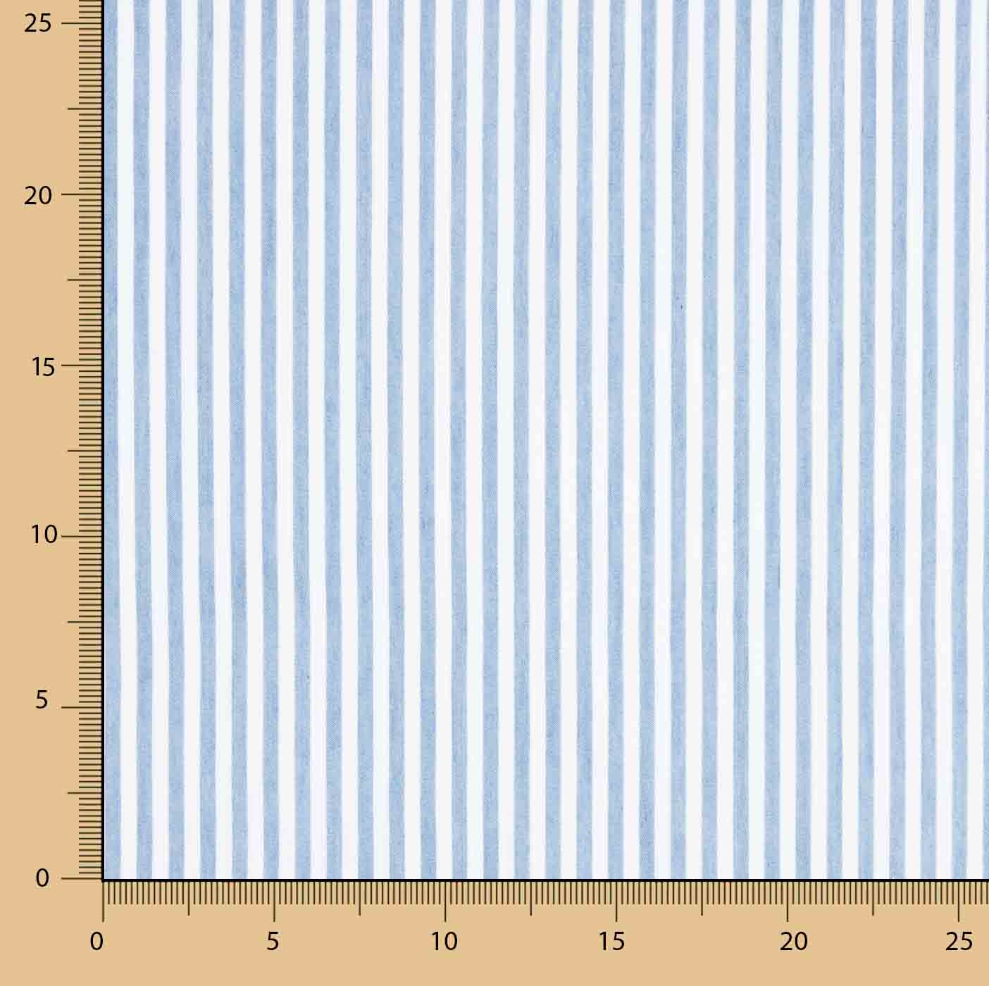 Tecido de sarja fina 100% algodão com desenho listrado em azul claro e branco, não estampado, mas tecido no próprio fio. Apresenta riscas verticais com aproximadamente 0,50 cm de largura e uma largura de peça de 145 cm. É um tecido com boa queda, suave e resistente, ideal para confecção de camisas, vestidos, calças leves, saias e peças de estilo clássico ou marinheiro. O seu acabamento natural e a sua estrutura em sarja conferem corpo e durabilidade sem perder conforto.