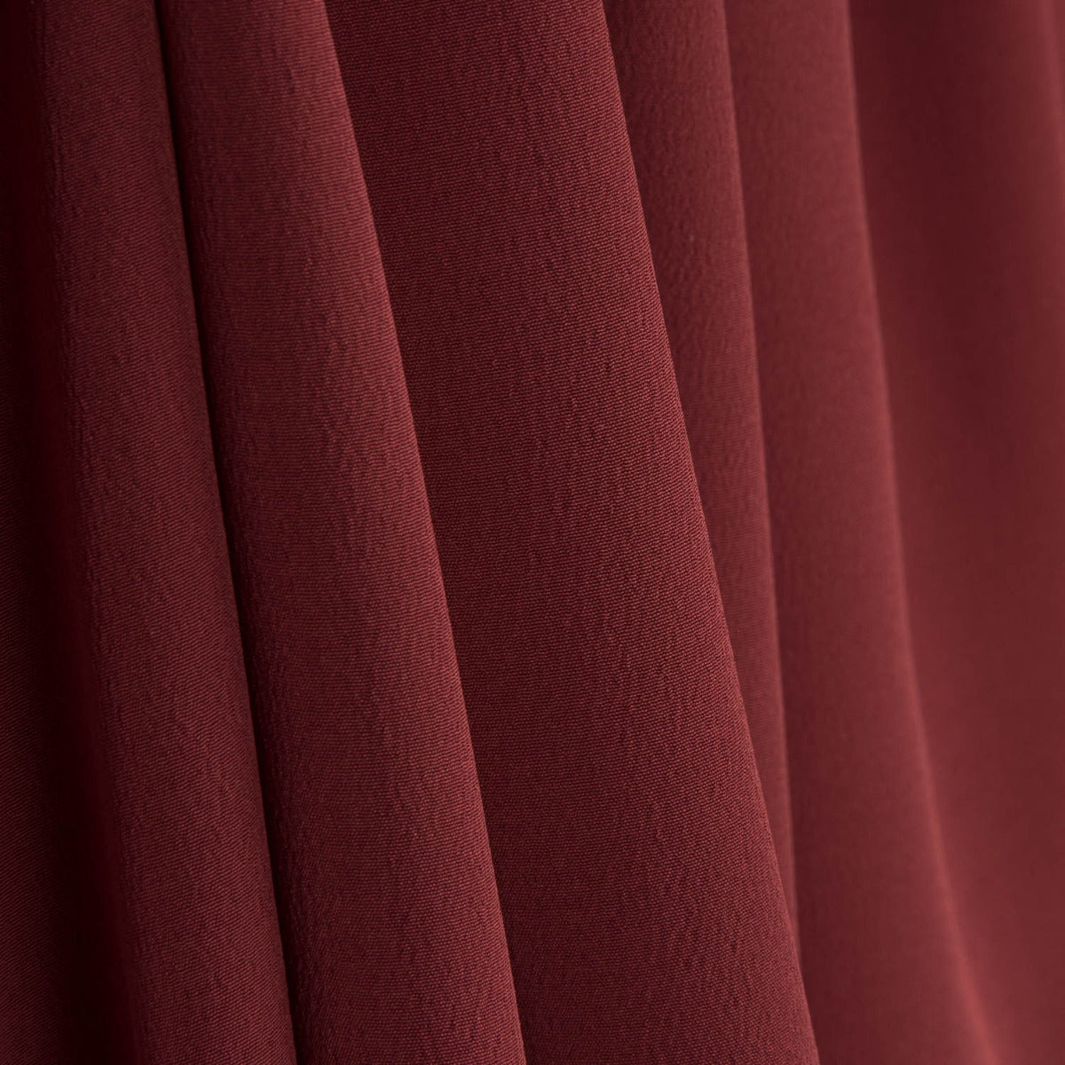 O Koshibo é um tipo de tecido crepe leve, muito apreciado na confecção pela sua textura suave, caimento fluido e leveza. Este Koshibo em cor granada é ideal para criar peças de vestuário frescas e com movimento, como blusas, saias, vestidos ou calças largas. Com uma gramagem de 130 g/m², este tecido é opaco, fácil de passar e com boa resistência ao uso. A sua composição 100% poliéster permite uma manutenção simples e durabilidade, enquanto a sua largura de 150 cm proporciona um excelente aproveitamento do tecido. A textura ligeiramente granulada característica do crepe confere-lhe um acabamento delicado e muito elegante.