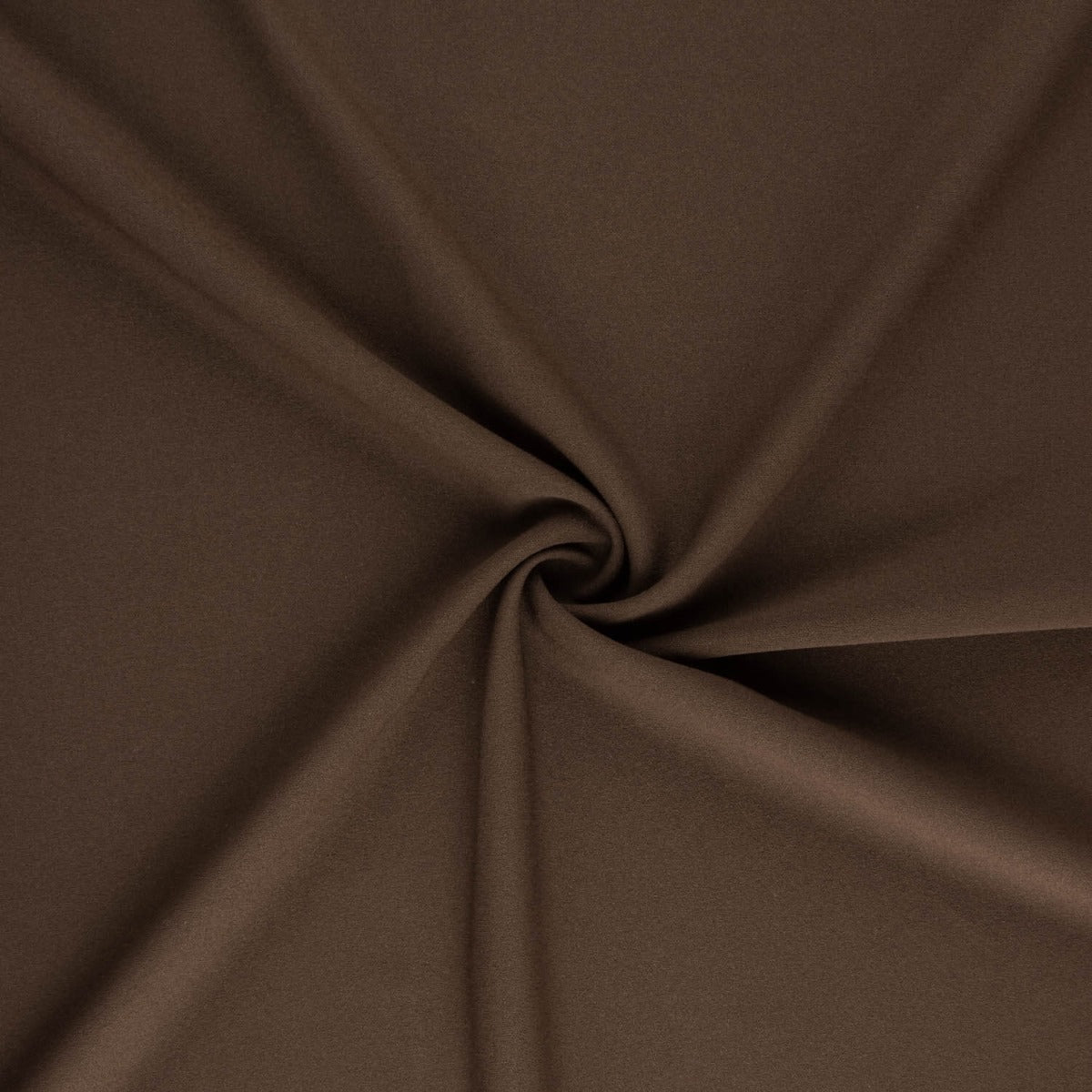 Tecido em cor castanha de malha crepe com corpo e bonito caimento, também conhecido como Neopreno ou Scuba, um tecido de malha com uma textura fina e ligeiramente granulada que lembra o crepe tradicional. A sua composição de 95% poliéster e 5% spandex, juntamente com uma gramagem de 300 g/m², proporciona-lhe uma excelente elasticidade e estrutura, tornando-a perfeita para confecionar vestidos justos, saias com volume, casacos estruturados e outras peças que precisam de corpo sem perder fluidez. Com uma largura de 165 cm, este tecido oferece um desempenho ótimo tanto em costura criativa como em projetos de moda atual.