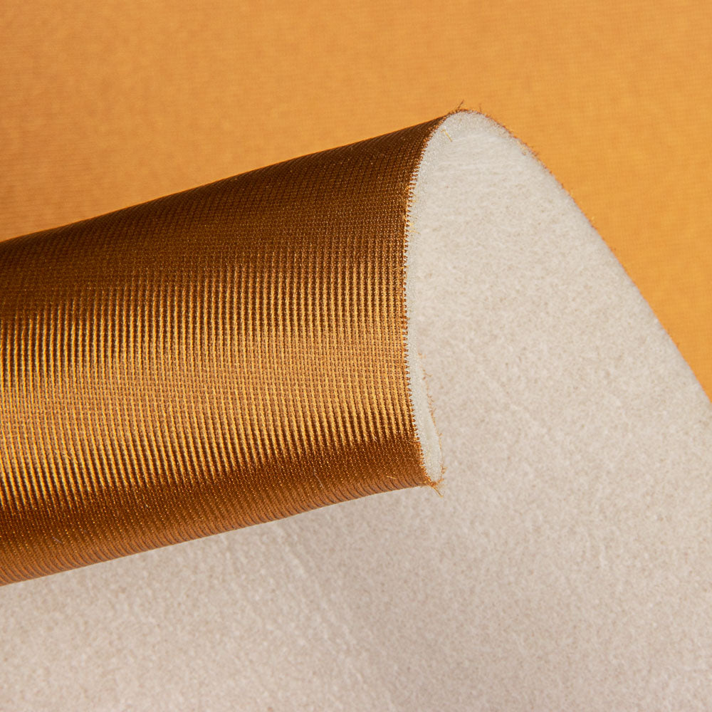 Tecido esponjoso com base rasete de cor ouro. Tecido esponjoso encorpado, rígido e maleável, que nos permite criar estruturas graças ao seu volume característico, muito fácil de trabalhar; pode ser costurado e permite o uso de adesivos. Esponja ideal para a confecção de fantasias, decorações e artesanato. *ESPESSURA DA ESPONJA 3 mm.