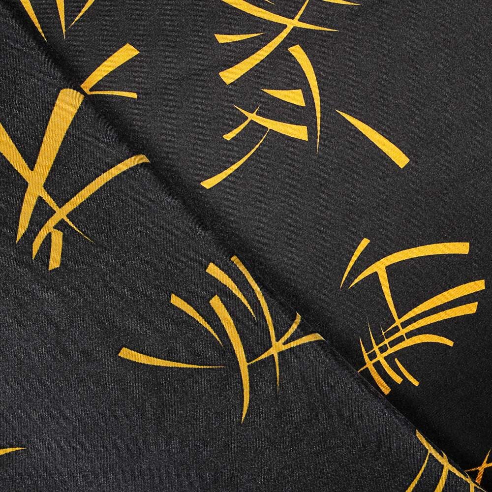 Tecido de fantasia estampado chinês preto. O cetim carnaval é um tecido muito simples, acetinado e sustentado, muito fácil de fazer. Este cetim é ideal para a confecção de fantasias, decoração e espectáculos.