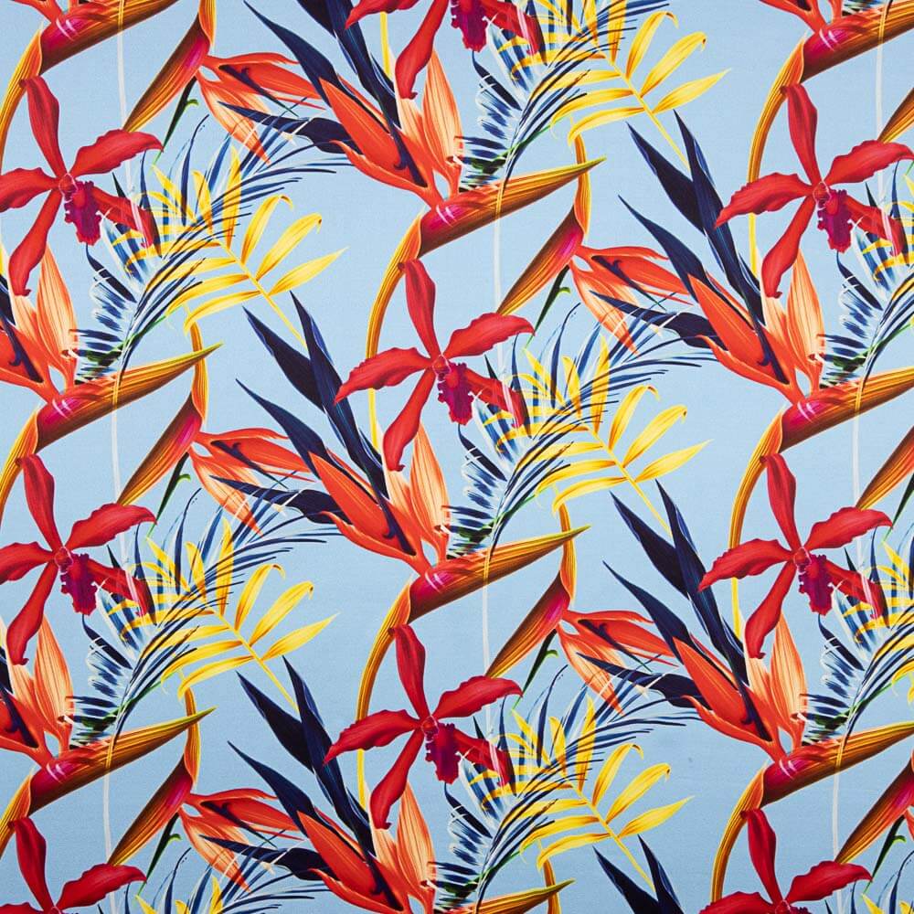 A seda italiana com estampa floral azul jeans é sem dúvida um dos tecidos mais procurados e exclusivos do mundo da moda. Tecido com textura sedosa, especialmente macio e agradável ao toque, com um drapeado muito característico e elegante. Cetim de seda 100% natural para a confecção de vestidos, saias, blusas, quimonos e todo tipo de vestuário de moda, seja casual ou para cerimônias.