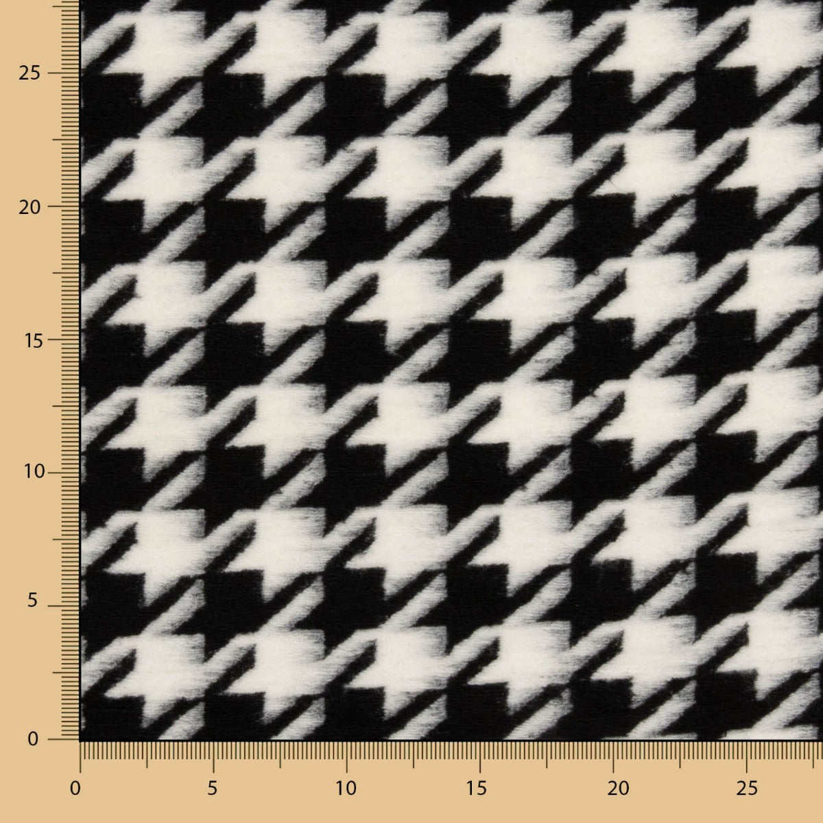 Tela de punto acrílico grueso con estampado de pata de gallo. Tela de tacto lanoso, gruesa y con cuerpo para prendas exteriores de invierno o ponchos...