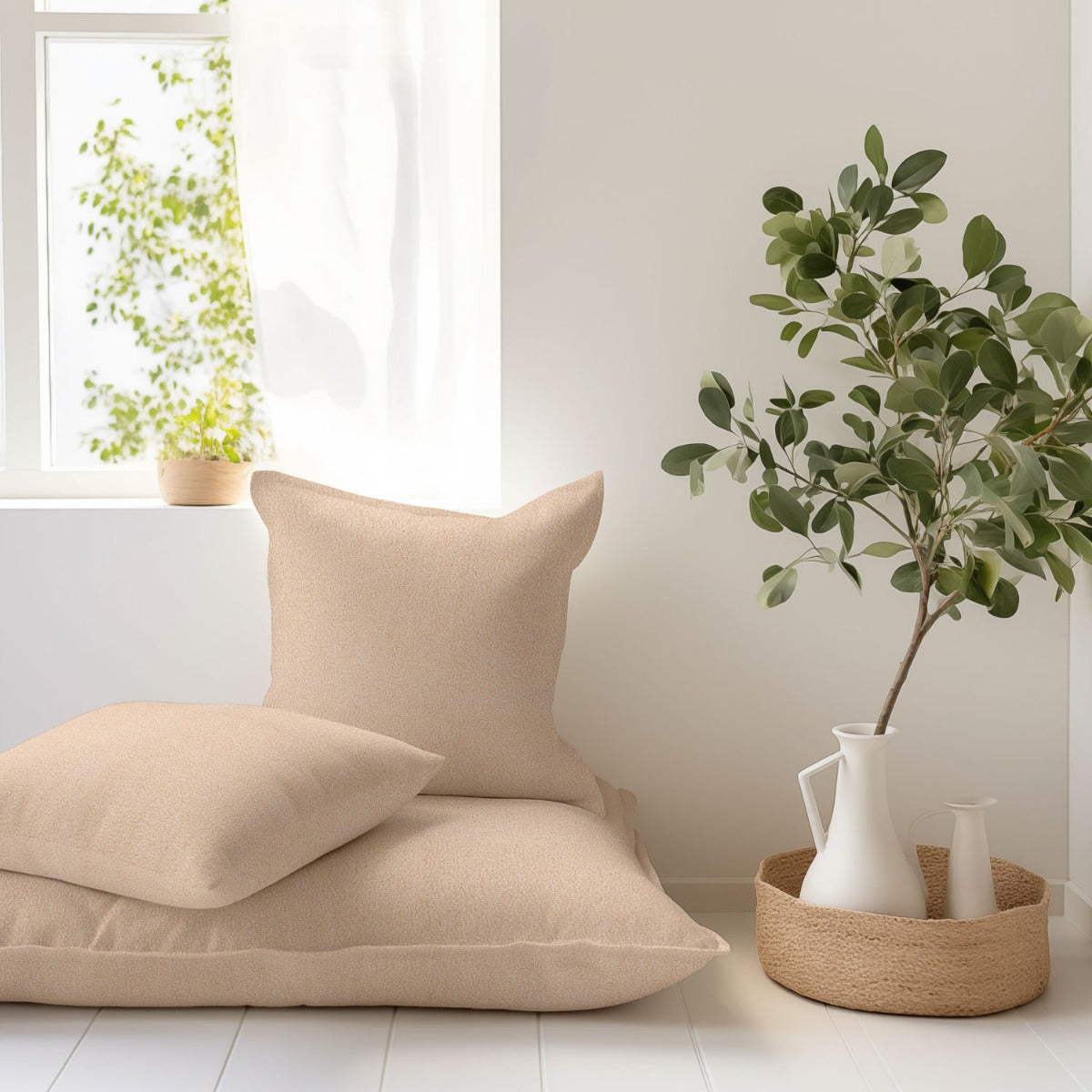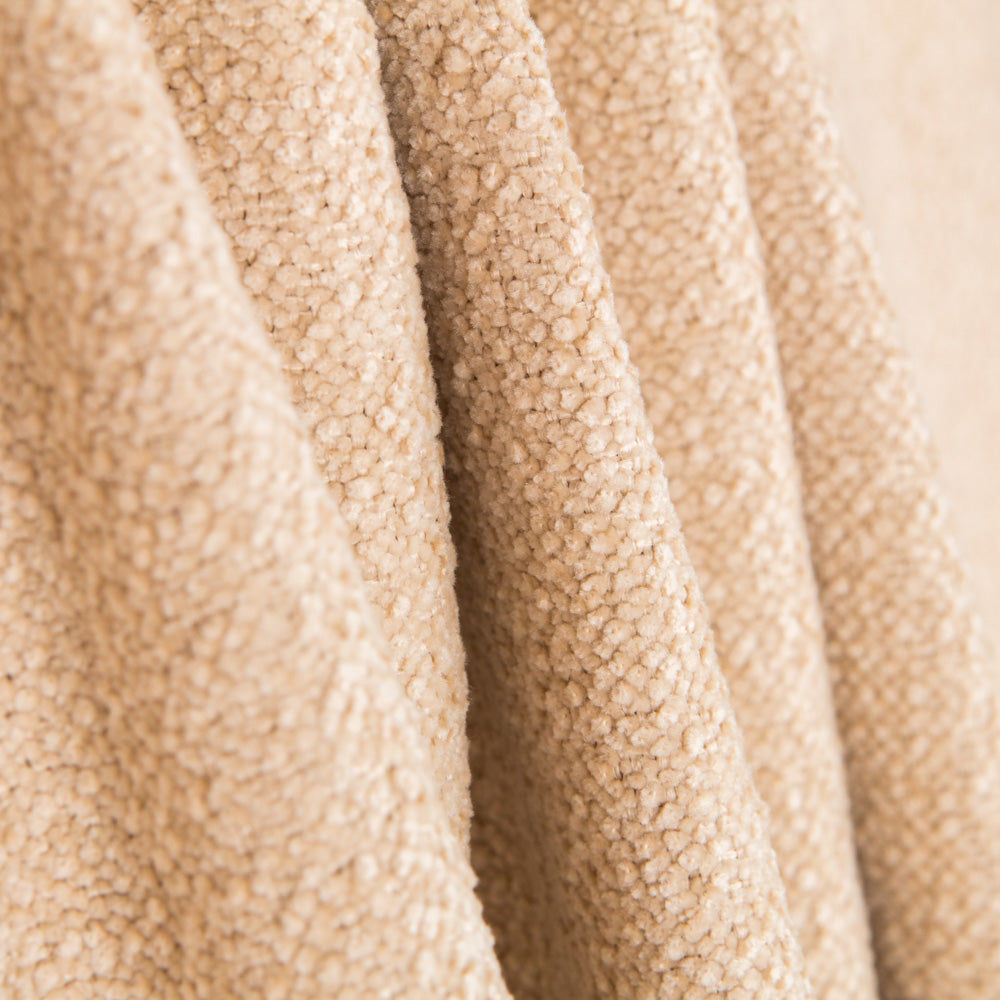 Tecido para estofos cor ecru com um acabamento em relevo tipo terry. Estofos macios e suaves, com queda e pouco corpo ideal para estofamento de cadeiras, sofás e poltronas, assim como almofadas decorativas. Além disso, é um tecido repelente de água, que evita a humidade e filtração de líquidos, fácil de lavar e manter, apenas com um pano húmido.