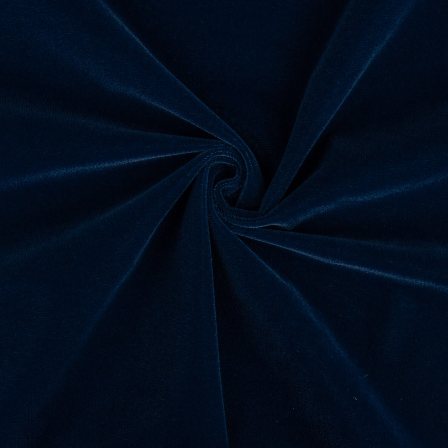 Tecido de veludo de poliéster azul suave de alta qualidade, com excelente caimento e toque suave e agradável. Confeccionado em 100% poliéster e com 150 cm de largura, este tecido destaca-se pela sua durabilidade, resistência e fácil manutenção, uma vez que não amarrota facilmente e é simples de lavar.