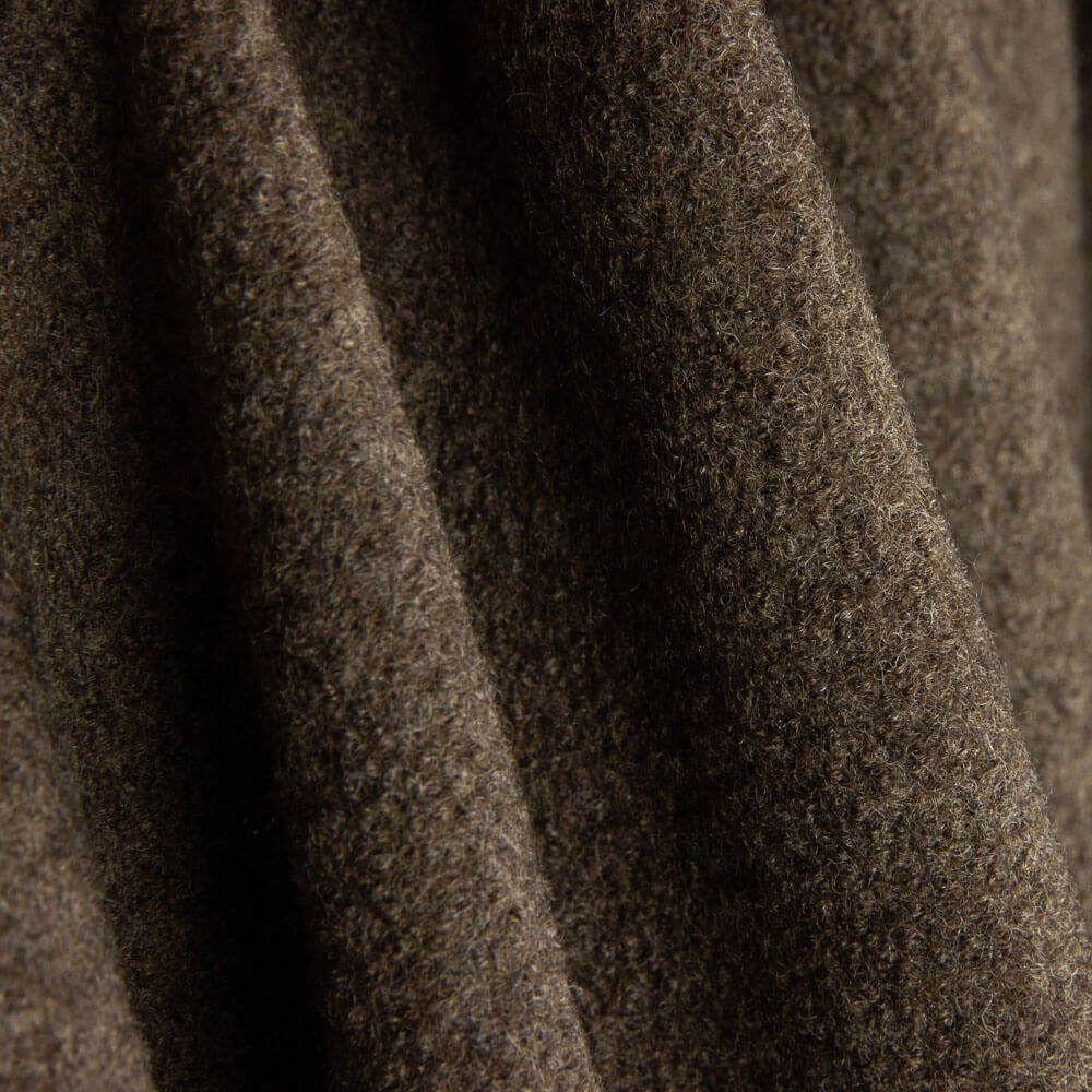 Telas para abrigo de lana cocida marrón. Tela de lana de alta calidad, gruesa para abrigos o prendas de exterior invierno. Tela que aporta calor y confort pero de delicado mantenimiento. Recomendamos lavar en seco o tratamiento tintoreria para mantener calidad.
