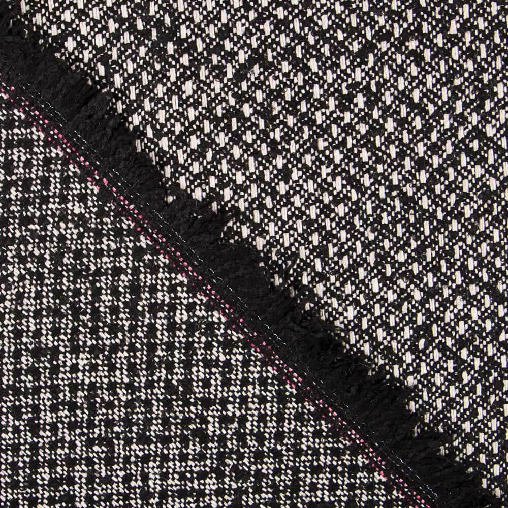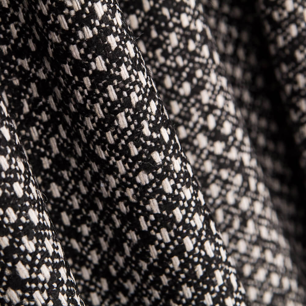 Tela Cheviot lana con poliester muy calido y agradable para abrigo con dibujo geométrico blanco. Tela de abrigo con composición de mezcla lana y acrílico proporciona menos cuidado al lavado, por lo que aumenta la durabilidad. Tela ideal para ropa de invierno, abrigos, accesorios...