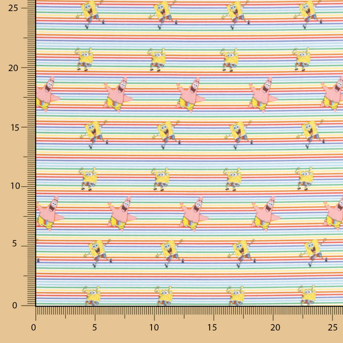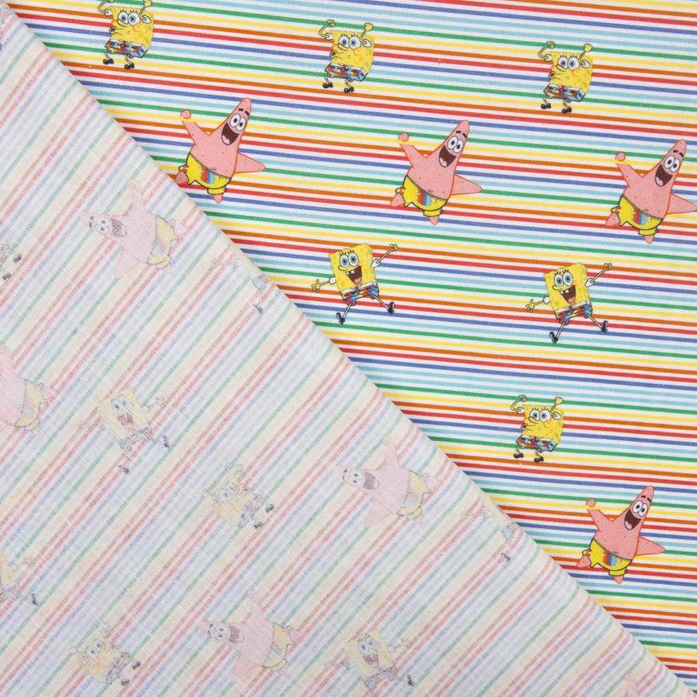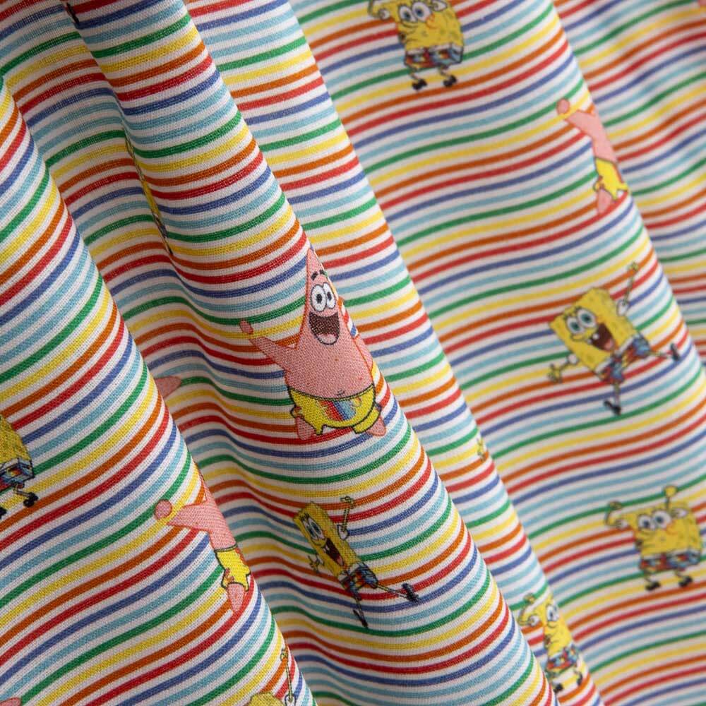 Tecido de popeline 100% algodão com estampado original das personagens da série SpongeBob. Popeline de algodão respirável, fina e muito macia, caracterizada pela sua grande versatilidade. A popeline é um tecido básico ideal para fazer almofadas, lençóis, patchwork e todo o tipo de decorações. Como se trata de um tecido 100% algodão, é preferível lavá-lo antes de o manusear.