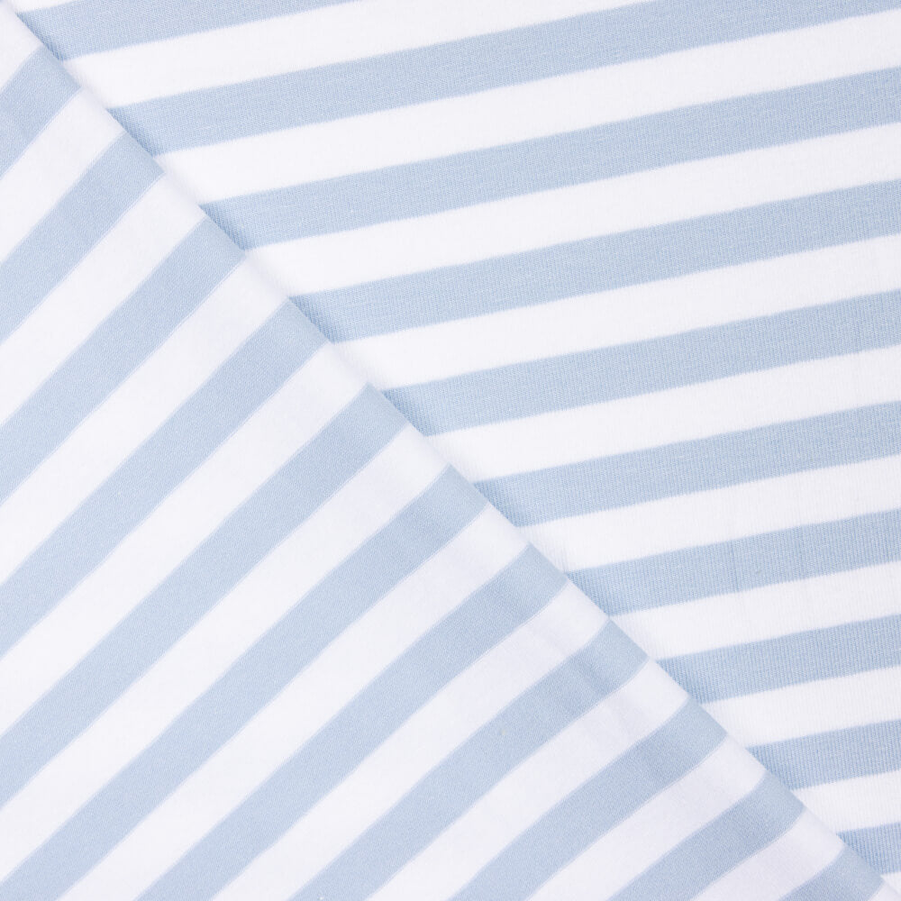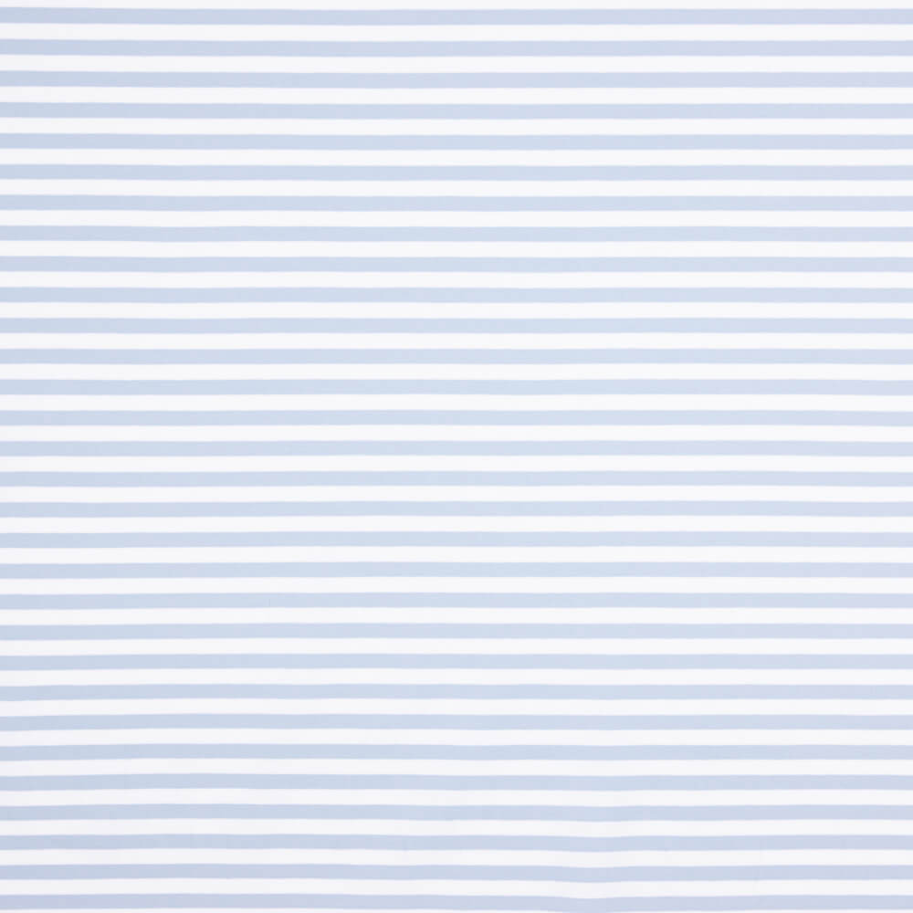 O tecido de malha com um estampado bicolor às riscas em azul claro e branco, com uma largura de riscas de 1 centímetro e uma composição de 95% de algodão e 5% de elastano, oferece uma combinação ideal de conforto e elasticidade. A textura suave do algodão proporciona uma sensação de conforto contra a pele, enquanto a adição de elastano proporciona flexibilidade e um ajuste perfeito. Os estampados às riscas em dois tons conferem um toque de estilo moderno e versatilidade a qualquer peça de vestuário confeccionada com este tecido. Ideal para peças de vestuário casuais e desportivas que exigem conforto e um aspeto fresco.