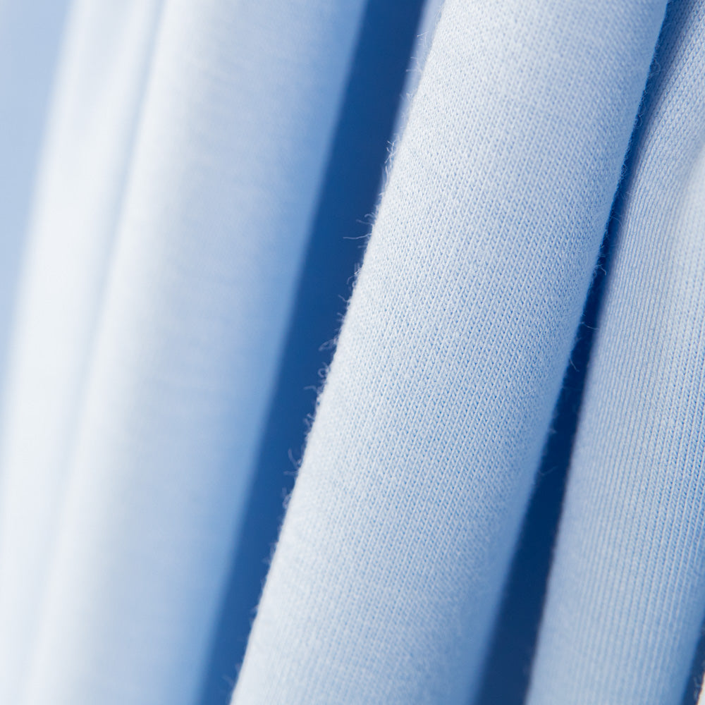 Punto elástico de algodón orgánico de color azul claro con certificado OEKO-TEX y GOTS (Global Orgánic Textile). Contiene un porcentaje de elastano que proporciona mayor comodidad y confort a las prendas. Punto para confeccionar camisetas, vestidos, faldas y pantalones, así como todo tipo de prendas ajustadas.