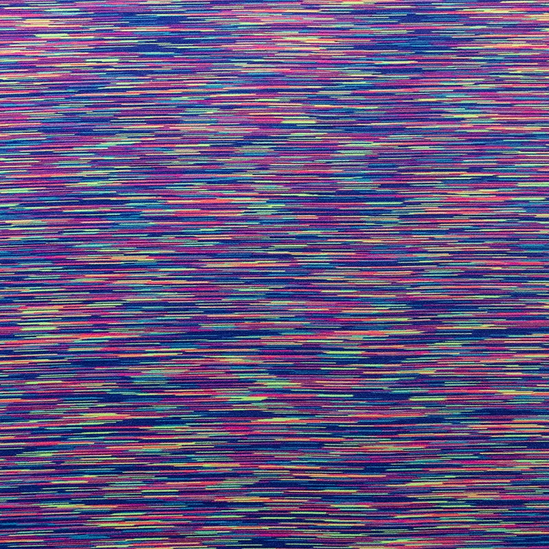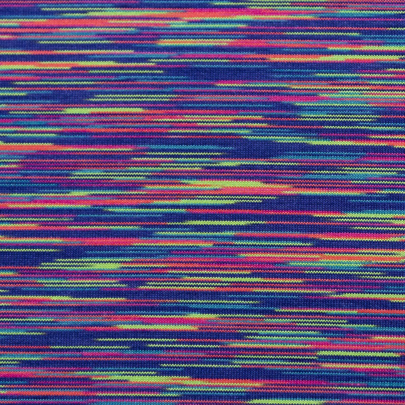 Compra telas online para leggins y mallas de rayas multicolor. Tela de punto fina, con caída, peso y con mucha elasticidad gracias al alto porcentaje de Spandex que contiene el tejido. Telas para leggins y mallas de colores vistosos de ajuste total al cuerpo. Es una tela elástica para ropa deportiva así como para hacer leggins y pantalones de total ajuste. Es una tela ideal para la confección de mallas para gimnasio ya que proporcionan total capacidad de movimientos. Se estira tanto en el largo como en el ancho de la tela.