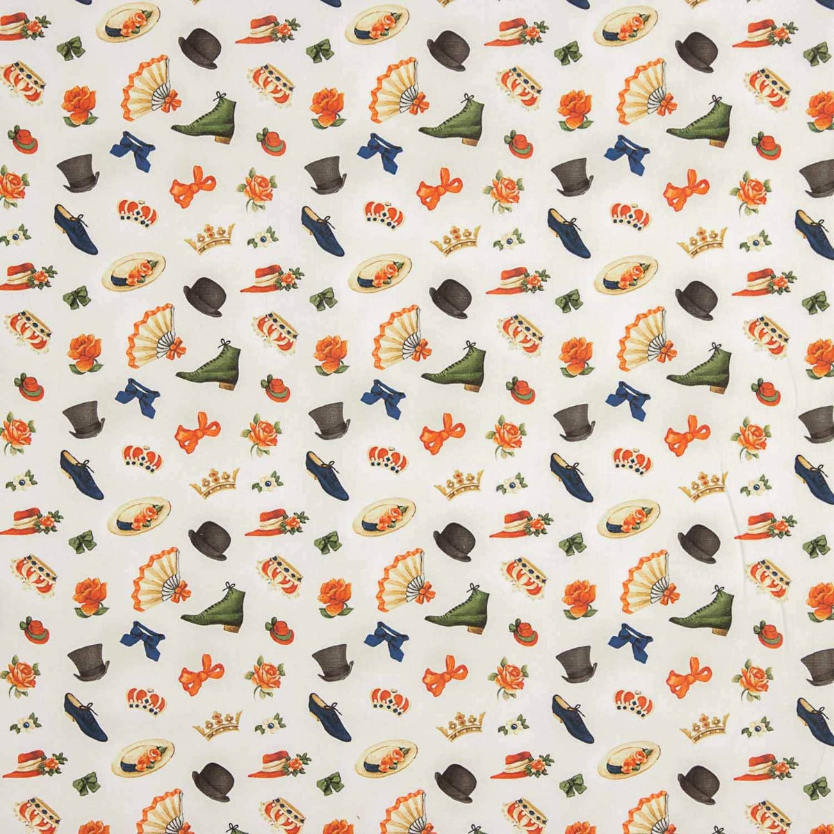 Este popeline de algodão, com uma largura de 150 cm e composição 100% algodão, apresenta um estampado vintage encantador de diversos acessórios como chapéus, laços, flores e coroas. Com seu design divertido e colorido sobre um fundo claro, é ideal para projetos de patchwork, decoração e confecção de roupas originais. A suavidade e leveza do tecido o tornam perfeito para colchas, almofadas ou até acessórios de moda com um toque nostálgico e único.