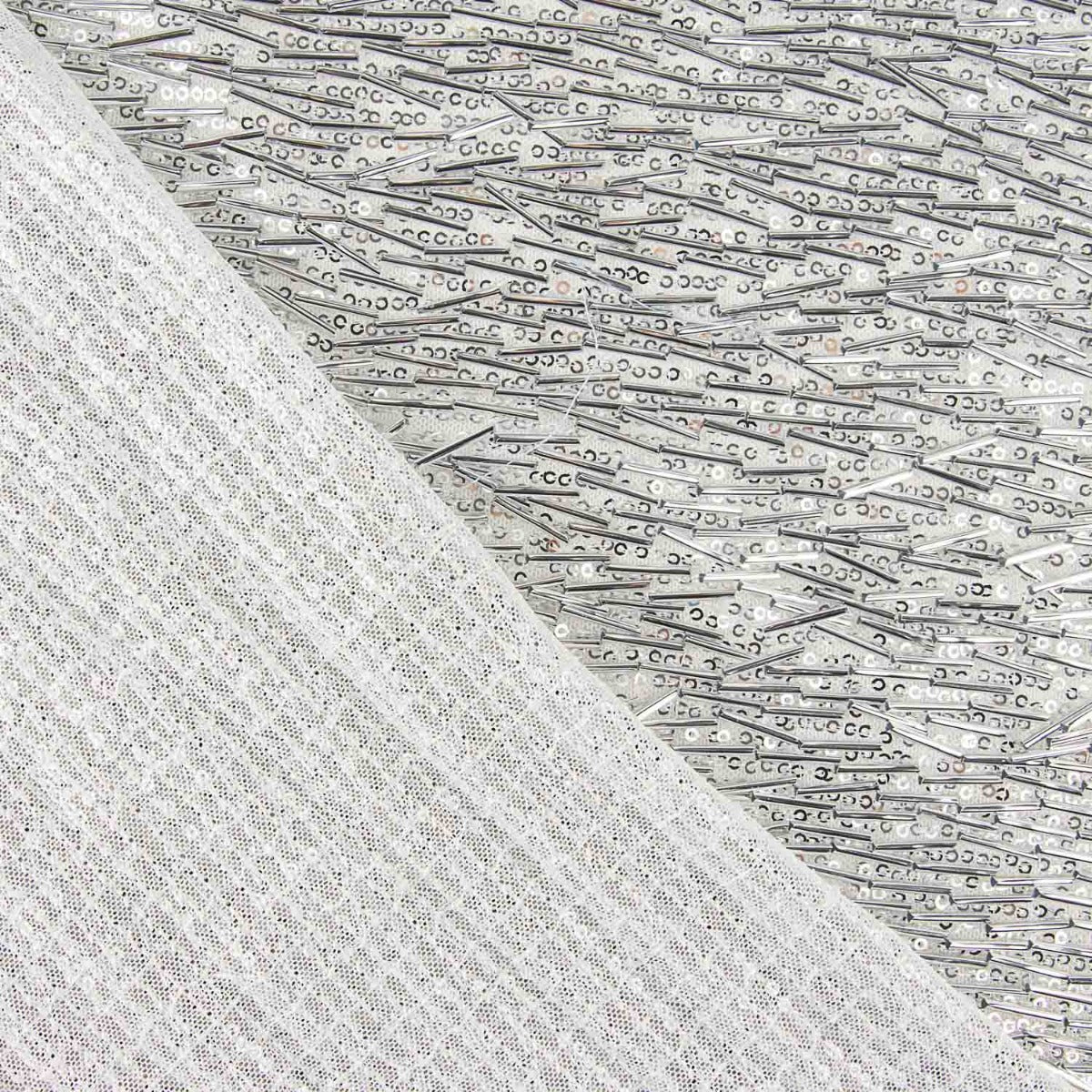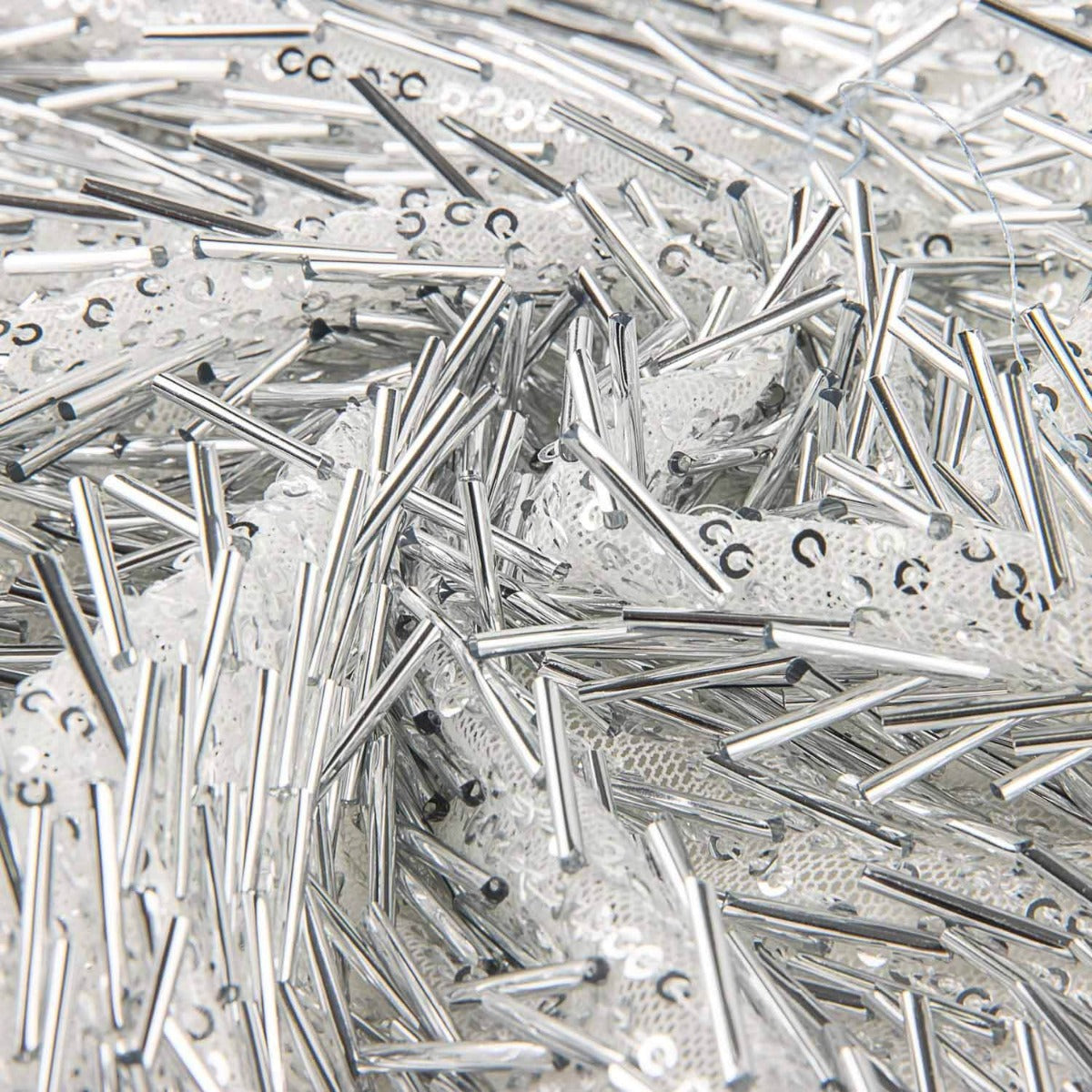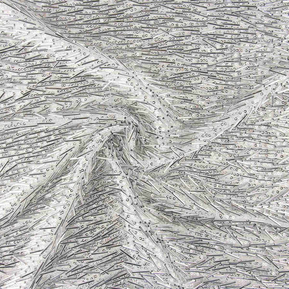 Lentejuelas de canutillo con mucho movimiento de color plata vestidos de fiesta sobre base de poliéster un poco elástica y suave a la piel. Lentejuelas brillantes y muy vistosas, fina, con mucha caída y de alta calidad. La lentejuela es una tela que aporta elegancia a las prendas de ropa confeccionadas. Con esta tela de lentejuelas negra podrás confeccionar tus propias faldas con brillantes, vestidos de fiesta y todo de apliques de moda.