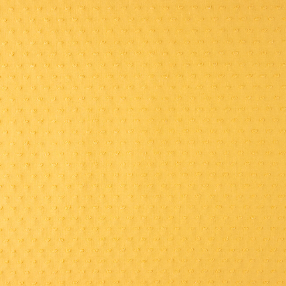Tela de plumeti color amarillo en algodón de gran calidad y muy versátil. El plumeti es una tela de algodón con un pequeño lunar bordado, sostenido, fino y fluido. Algodón plumeti con el que puedes confeccionar vestidos, faldas y camisas.