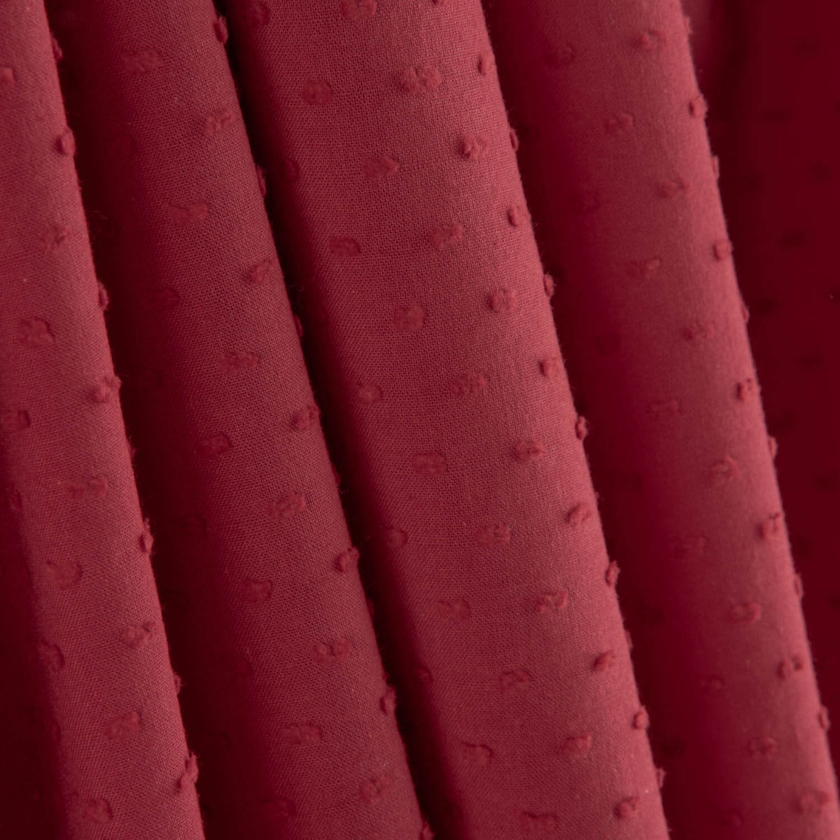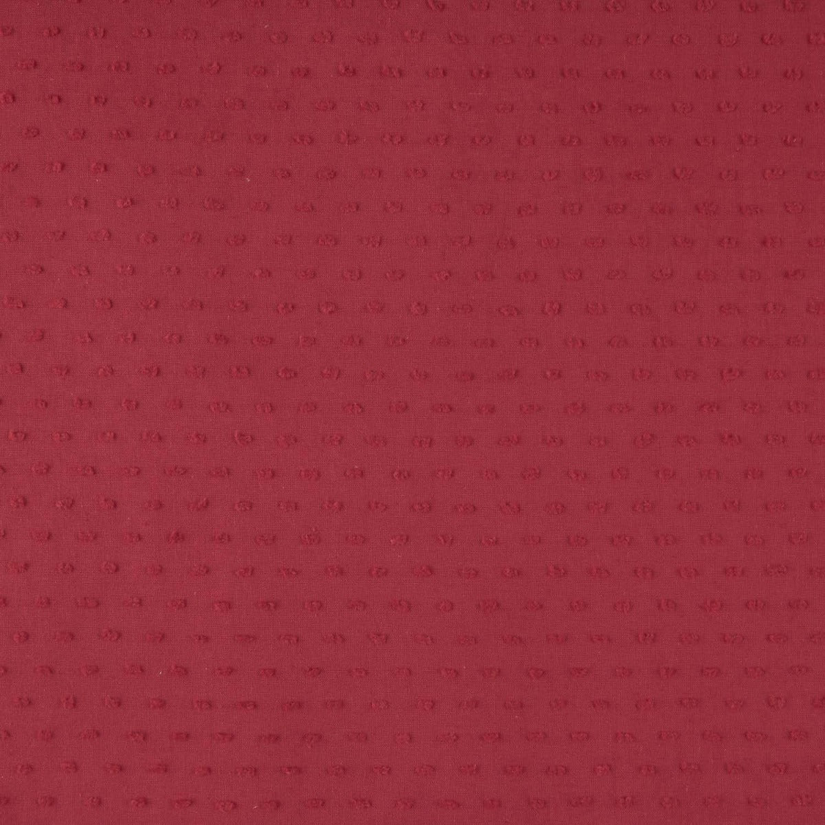 A nossa batista plumeti em 100% algodão na cor vermelha é um tecido leve, fresco e com personalidade, perfeito para confecções elegantes e cheias de personalidade. Apresenta um bordado em pequenas manchas (plumeti) separadas a 1,3 cm, no mesmo tom vermelho intenso, criando um efeito subtil mas chamativo. Com uma gramagem de 107 g/m², oferece um caimento leve e um toque suave na pele, ideal para blusas, vestidos, saias, moda infantil, enxovais, roupa de bebé, roupa de cerimónia e decoração leve. Para a sua confecção, recomenda-se a utilização de agulhas finas (60/8 – 70/10) e acabamentos delicados, como costura francesa ou remalado fino. Pode ser combinado com forros leves, como batista lisa ou voile de algodão, para conferir opacidade sem perder a frescura. O seu tom vermelho confere intensidade e sofisticação, perfeito para peças de verão, moda infantil e decorações com um estilo vibrante.