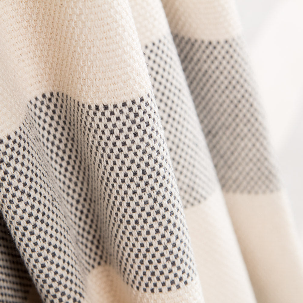 Tecido de estofamento com padrão de listras cinzentas. Lona jacquard de 280 cm de largura com muito corpo, totalmente opaca e altamente resistente à fricção. Pode ser lavado à máquina sem cuidados especiais. As riscas são verticais, começando e terminando em ambos os lados da ourela. Tamanho da risca 6 centímetros.