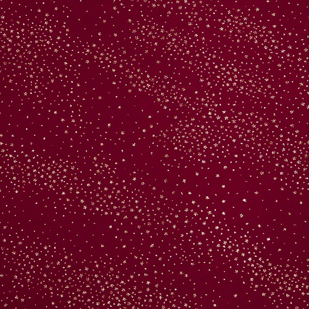 Veludo elástico garnet liso com reflexos prateados. O veludo é um básico de moda, um tecido particularmente macio e aveludado, muito drapeado e, ao mesmo tempo, elegante. Outra característica do veludo é o efeito de água criado pelo acabamento do tecido, dependendo da luz. O veludo esticado é ideal para fazer vestidos, camisas, saias e até calças.
