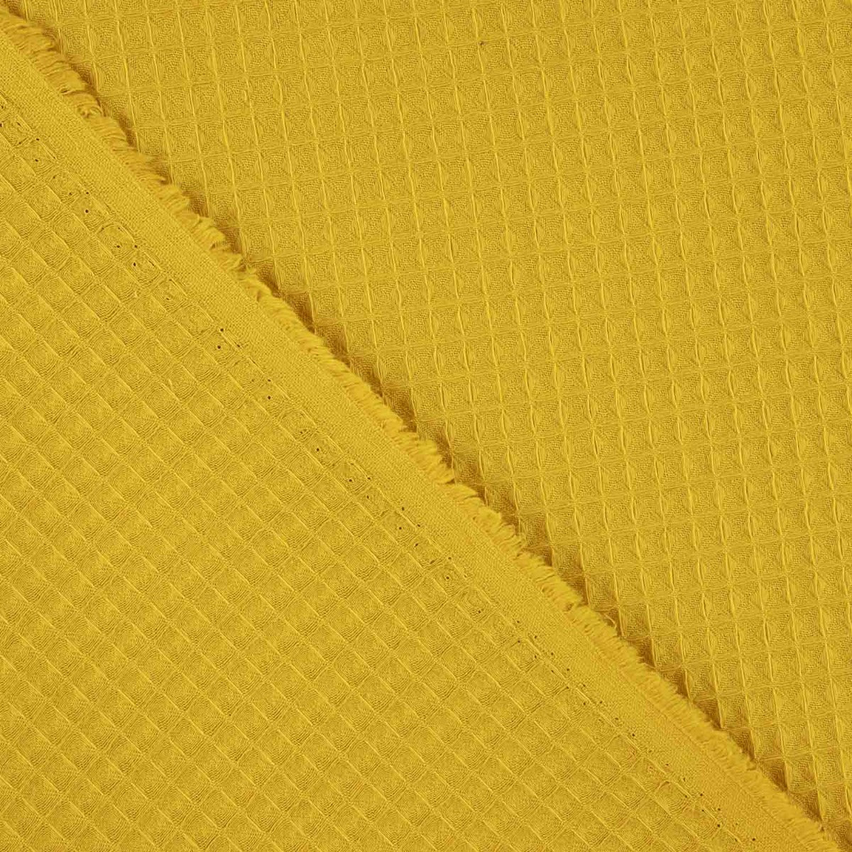 Ilumina tus proyectos con esta alegre y moderna tela piqué waffle en color mostaza, una opción ideal para quienes buscan un toque de color sin renunciar a la elegancia.