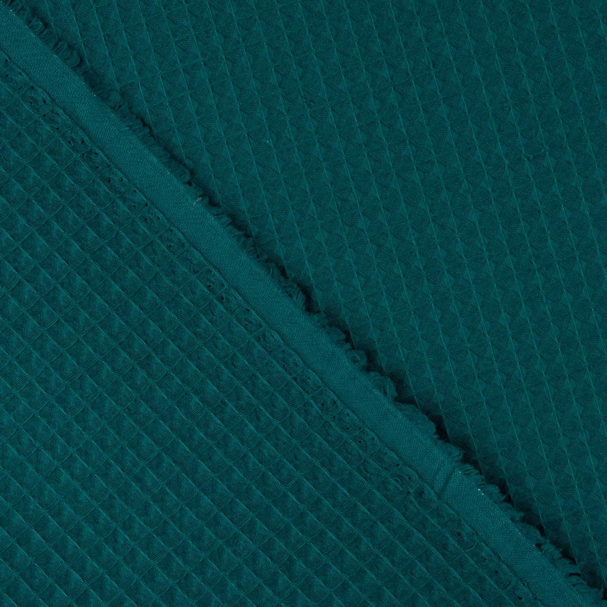 Atreva-se com a elegância profunda deste tecido piqué waffle em verde canard, um tom sofisticado que confere personalidade e estilo a qualquer projeto têxtil. A sua textura característica tipo waffle não só adiciona um acabamento visual atraente, como melhora a respirabilidade e a capacidade de absorção do tecido. Confeccionado em 100% algodão e com uma largura de 140 cm, é ideal para toalhas leves, colchas, capas, mantas, pijamas, roupões ou roupa de bebé. O verde canard combina na perfeição com tons mostarda, crus, dourados ou terra, adaptando-se tanto a ambientes modernos como clássicos. Um tecido versátil, decorativo e com muita presença.