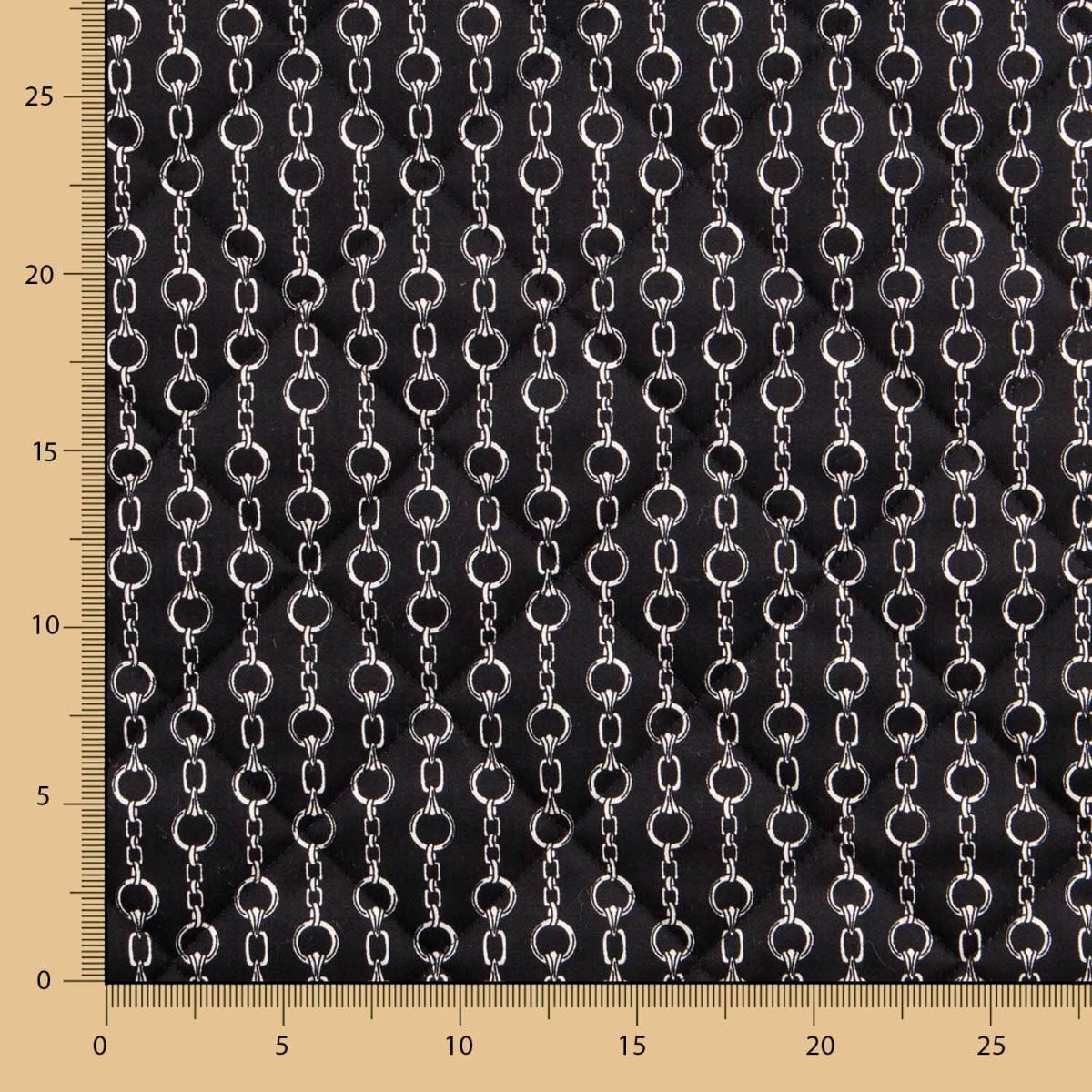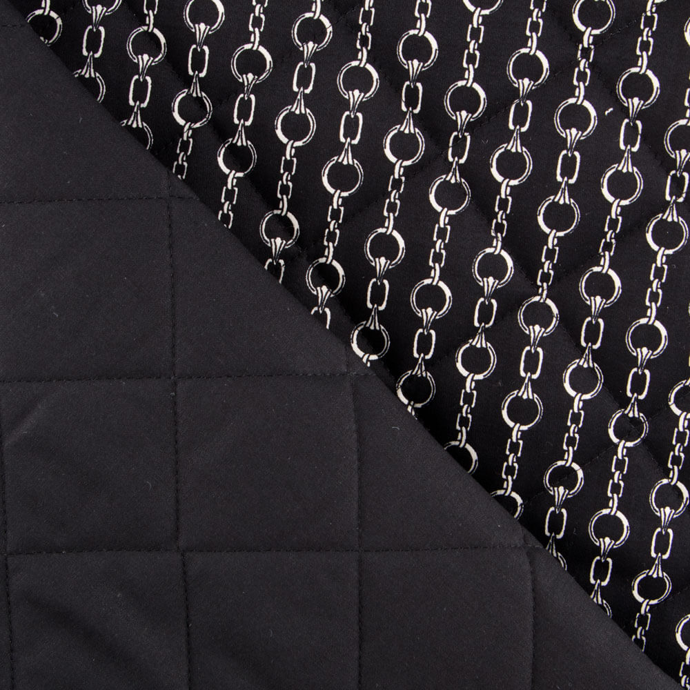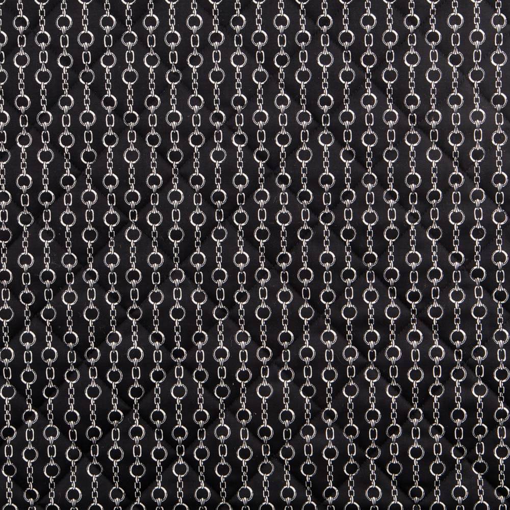Tecido acolchoado de algodão com estampado de correntes e forro interior. Tecido com recheio acrílico e volume para casacos de Inverno. Tecido de algodão acolchoado nas duas faces.