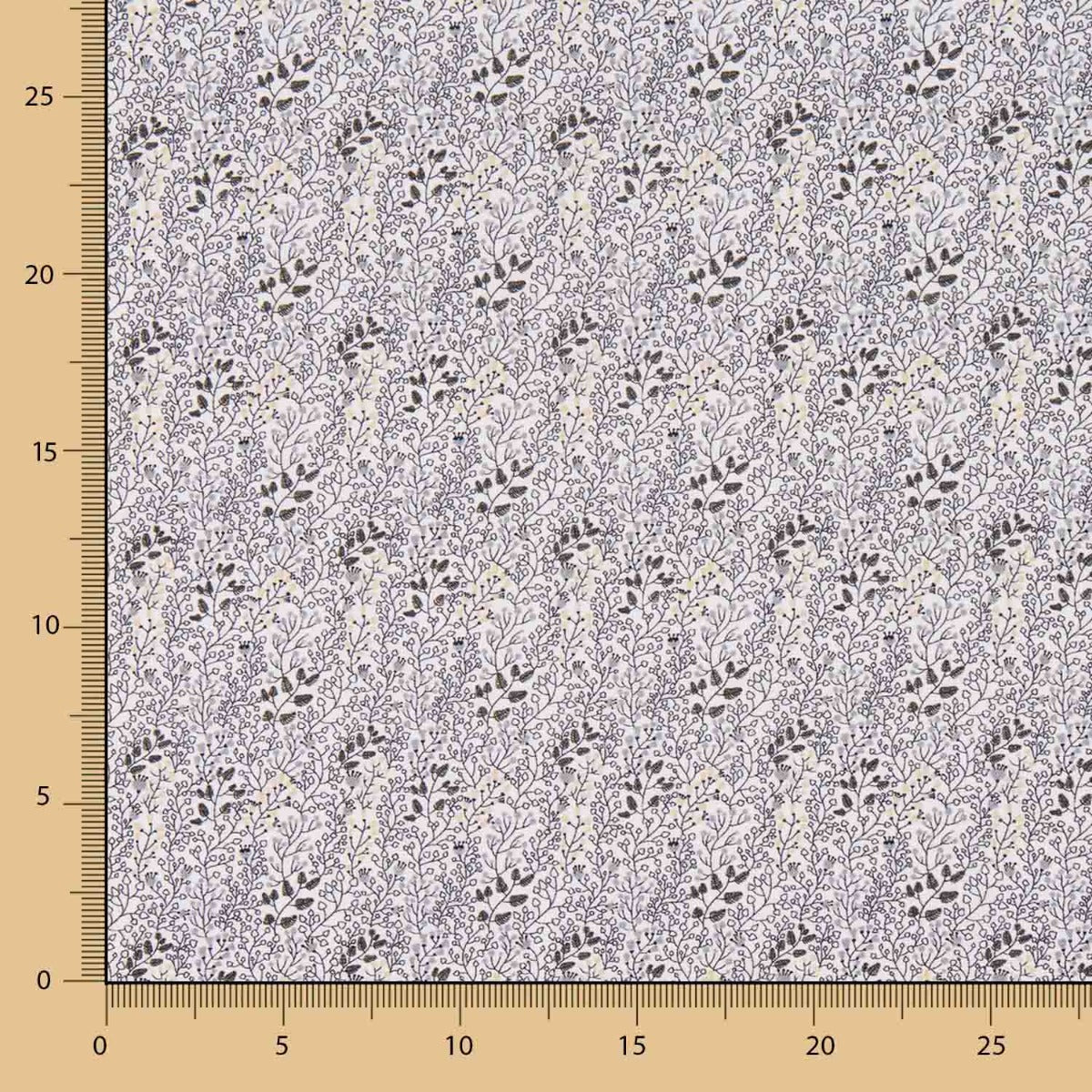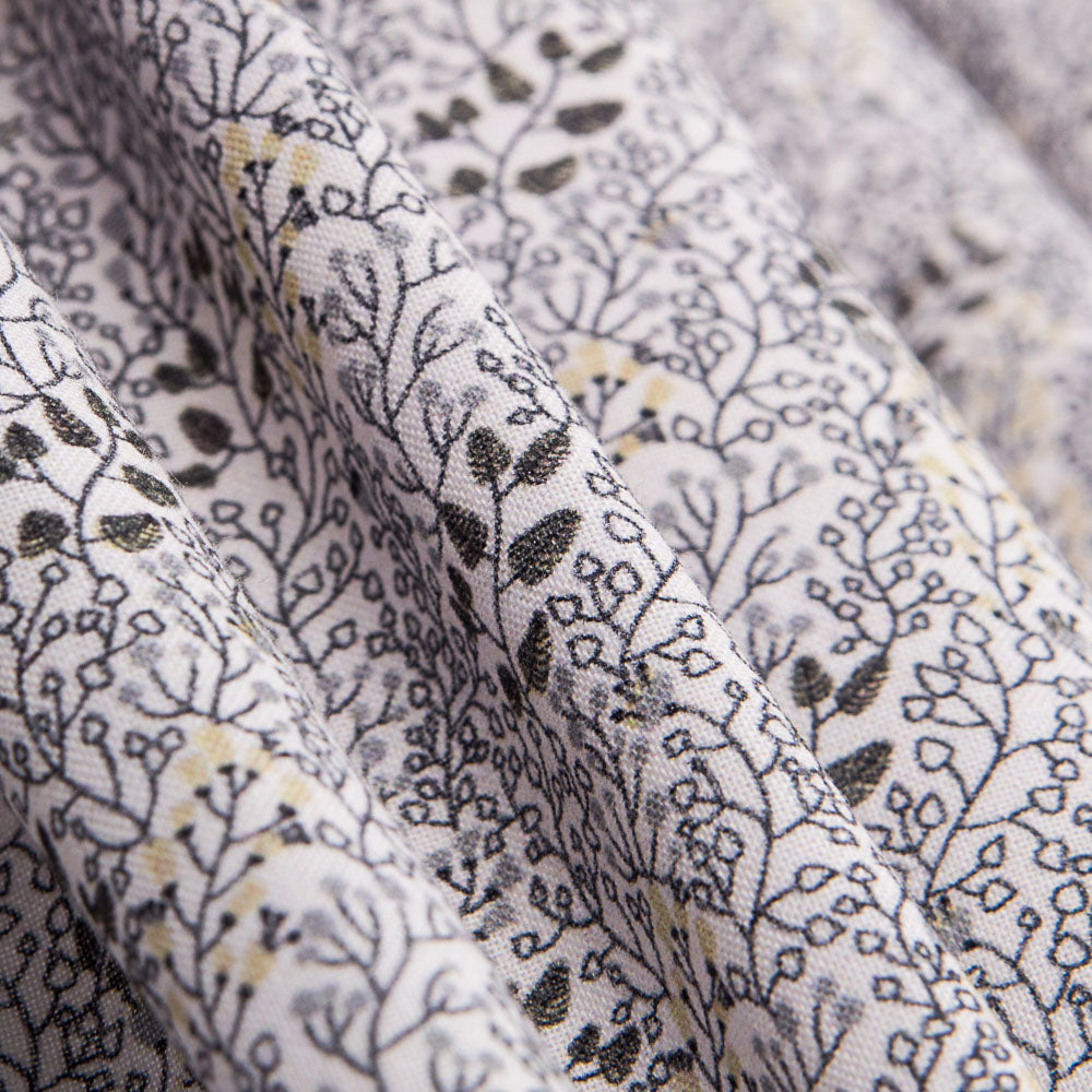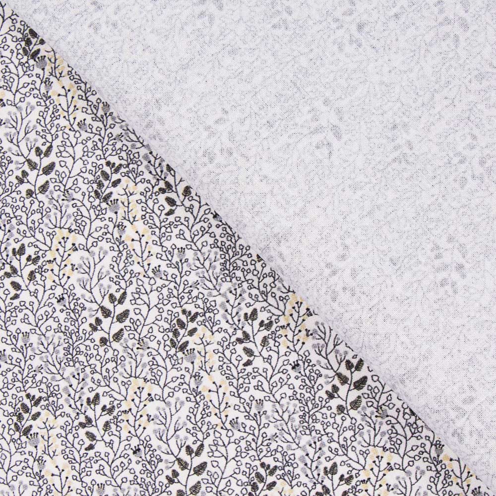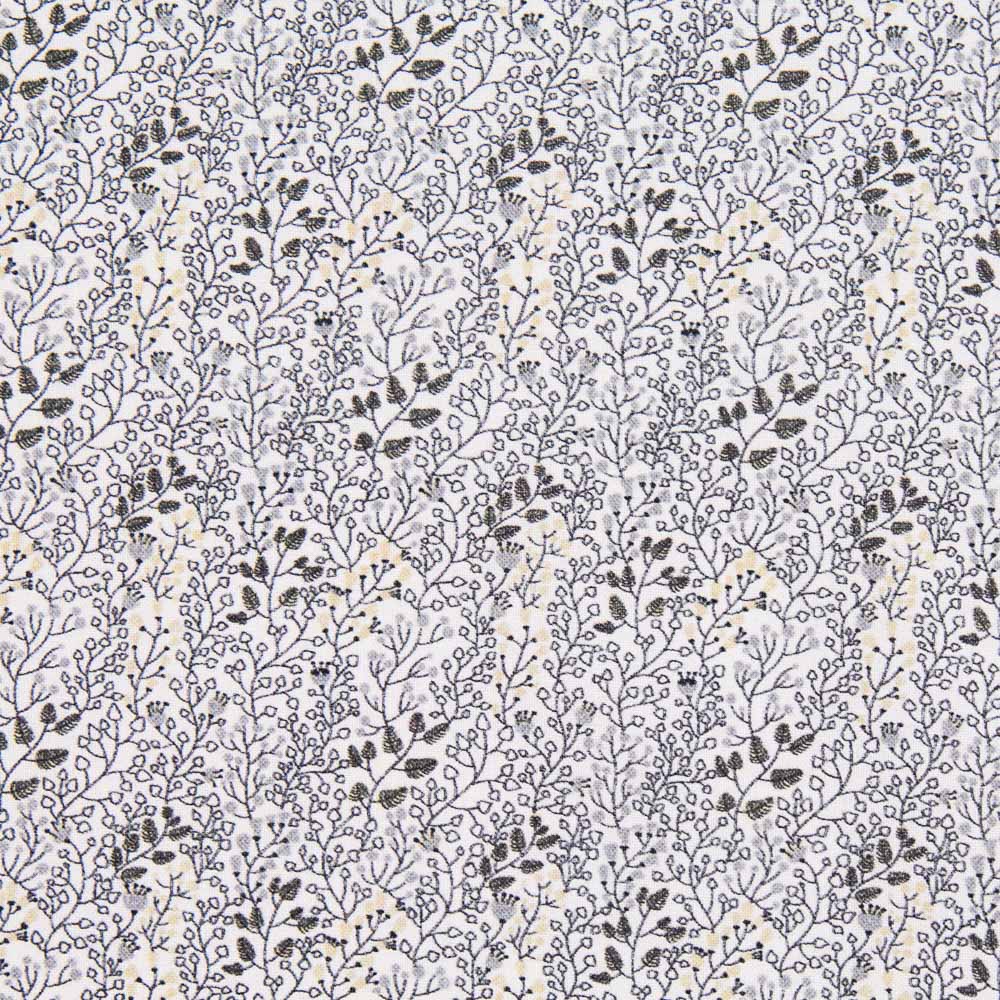 Algodão percalço de algodão estampado com ervas cinza. Tecido de algodão orgânico (GOTS) e OEKO-TEX certificado pelo ICEA de alta qualidade, sustentado e macio.