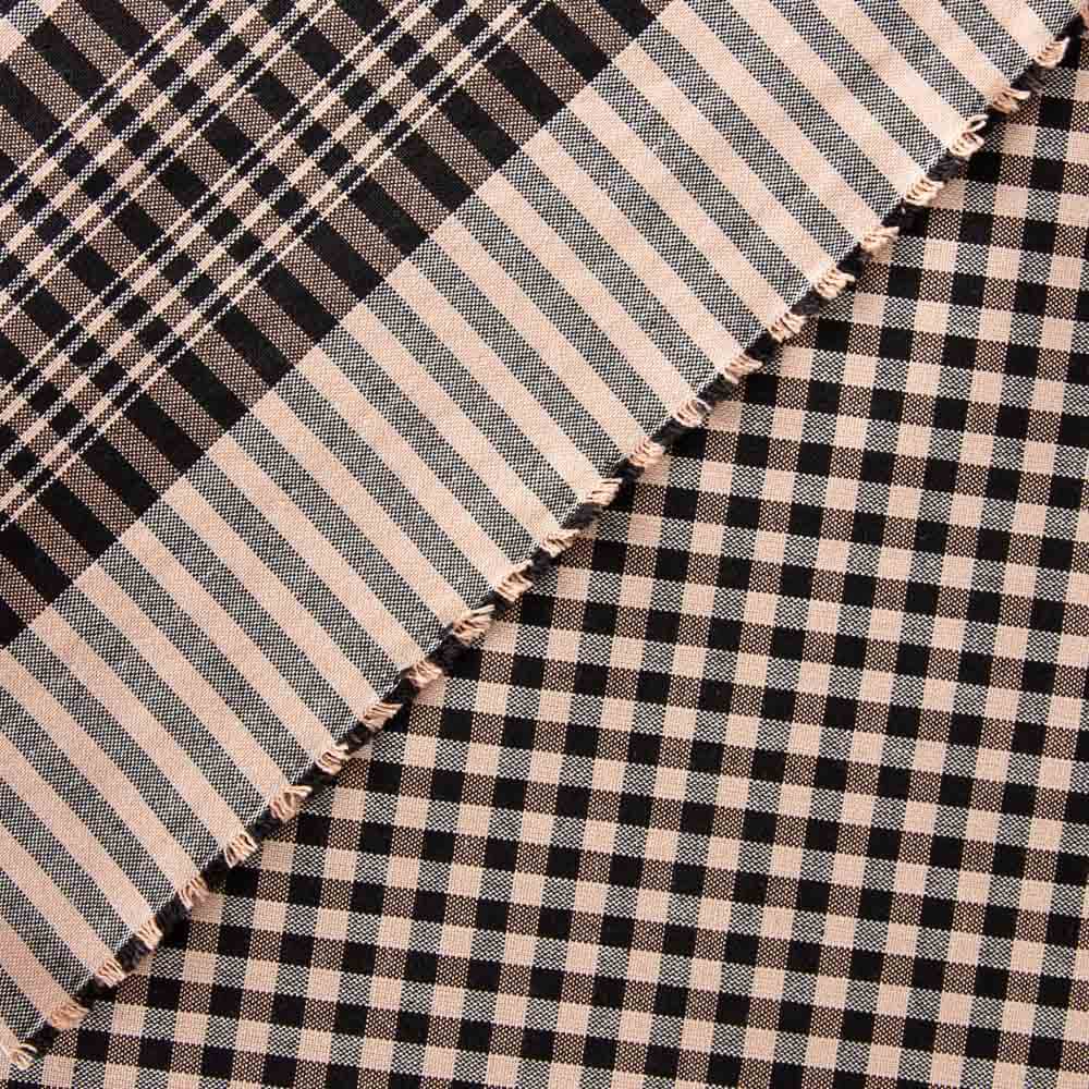 Tecido Farcell xadrez típico para a produção de lenços. Tecido clássico para lenços de pescoço em xadrez preto e salmão. Tecido macio e maleável, com caimento. Ideal para o fabrico de lenços Farcell, toalhas de mesa, aventais e até panos e cortinas para cozinhas, decoração, restaurantes, etc. É um tipo de estampado rústico típico muito apreciado em decorações e vestuário tradicionais.