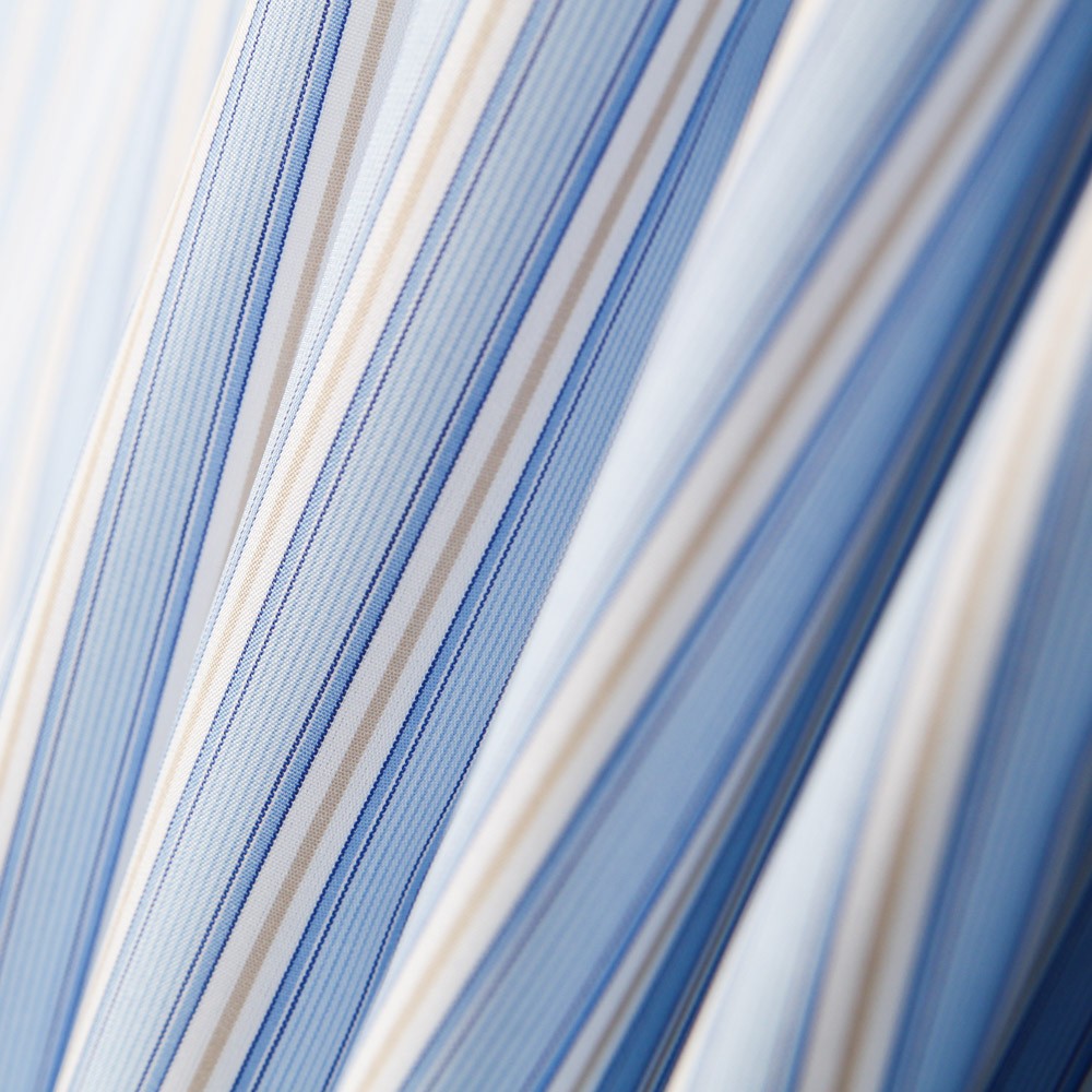 Tecido para camisa italiana riscas azul e bege. Tecido de algodão para camisas com tiras finas e fluidas de alta qualidade.