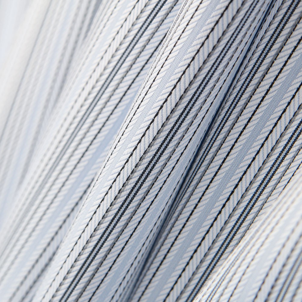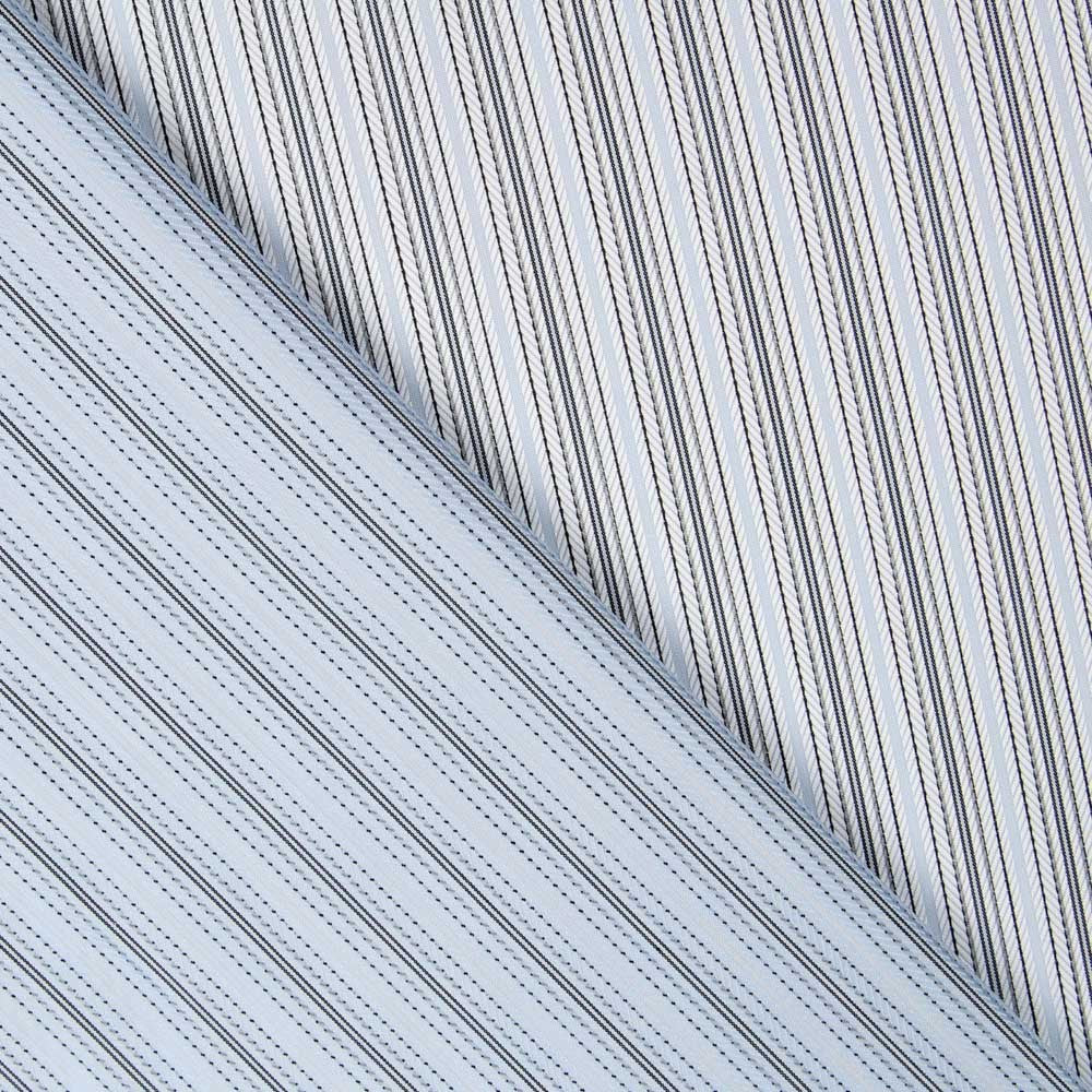 Tecido jaqcuard azul italiano para camisa. Tecido de algodão para camisas com tiras finas e fluidas de alta qualidade.