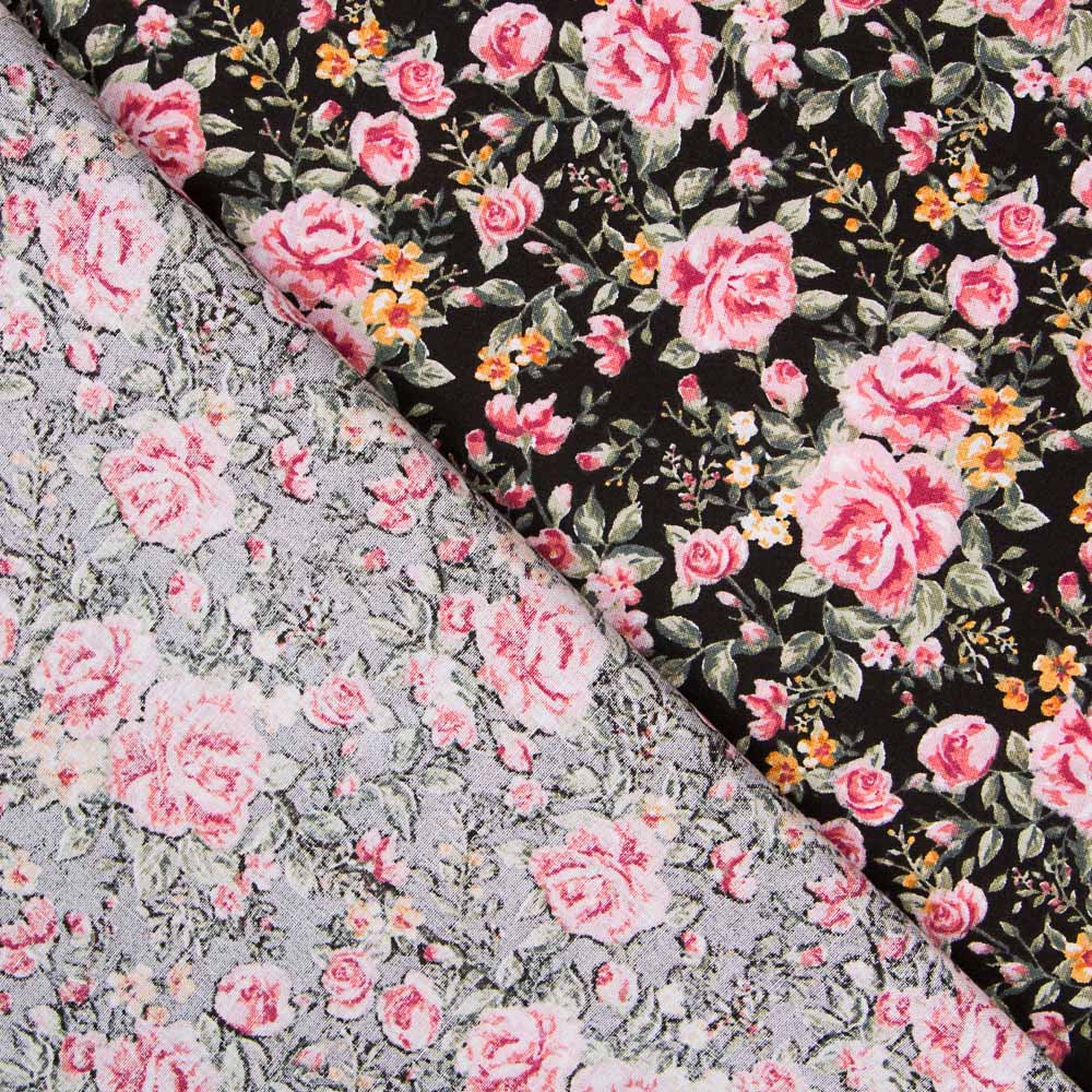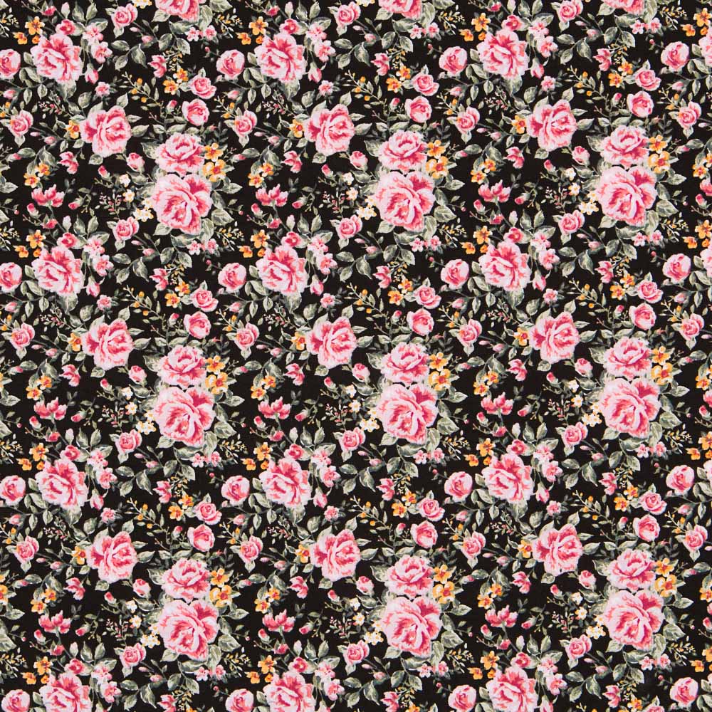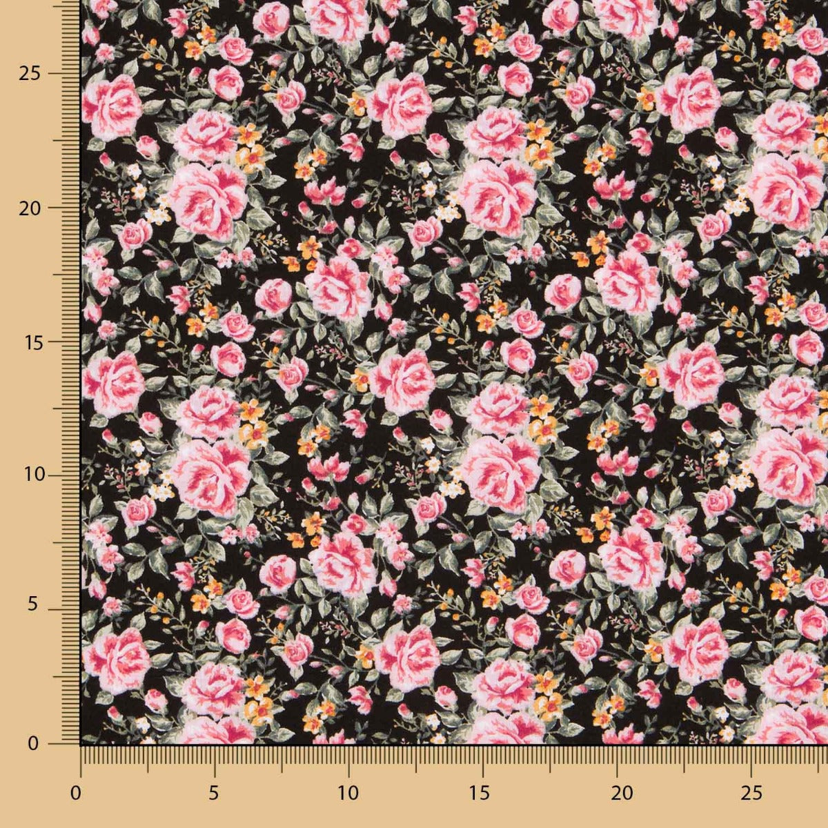 Algodão estampado percal com impressão cretônica preta. Tecido de algodão orgânico certificado pela ICEA de alta qualidade, popeline sustentado e macio ideal para fazer lençóis, almofadas, cortinas e acessórios, como produtos de higiene pessoal, capas e bolsas. Também é perfeito para criações de patchwork e trabalho.