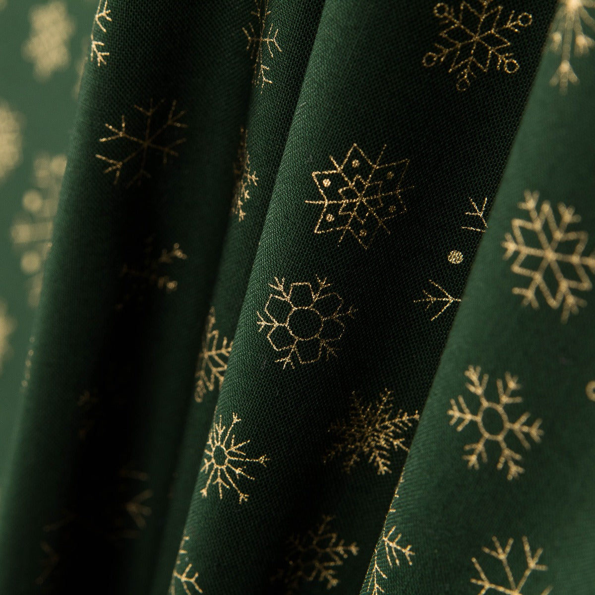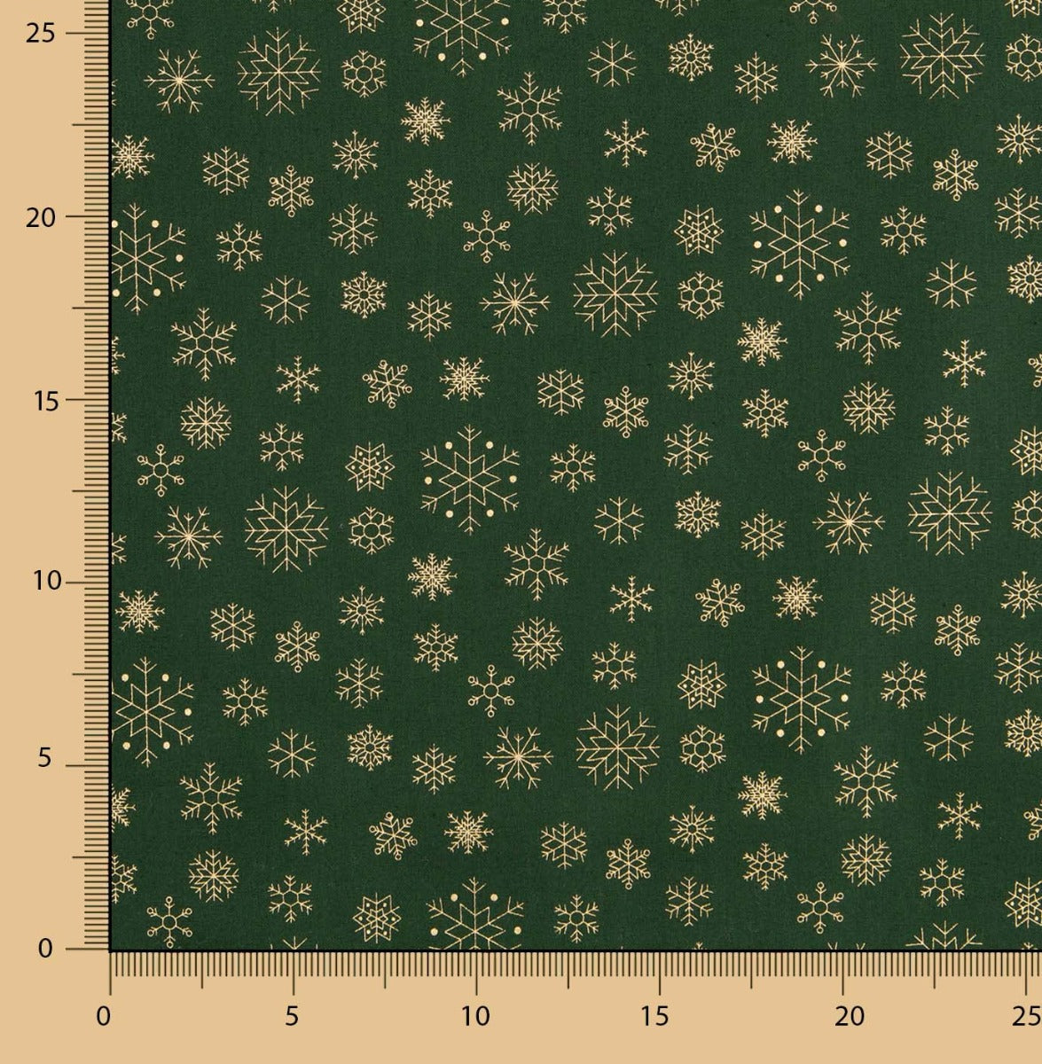 Tecido Lurex de Natal estampado Stars Green Multi Gold com enfeites de Natal. O popeline é um tecido de algodão muito versátil, macio, fino e forte. Tecido de algodão ideal para decoração de Natal, toalhas de mesa e patchwork.