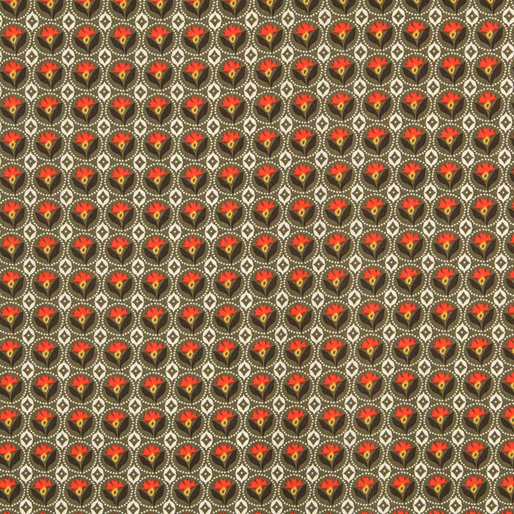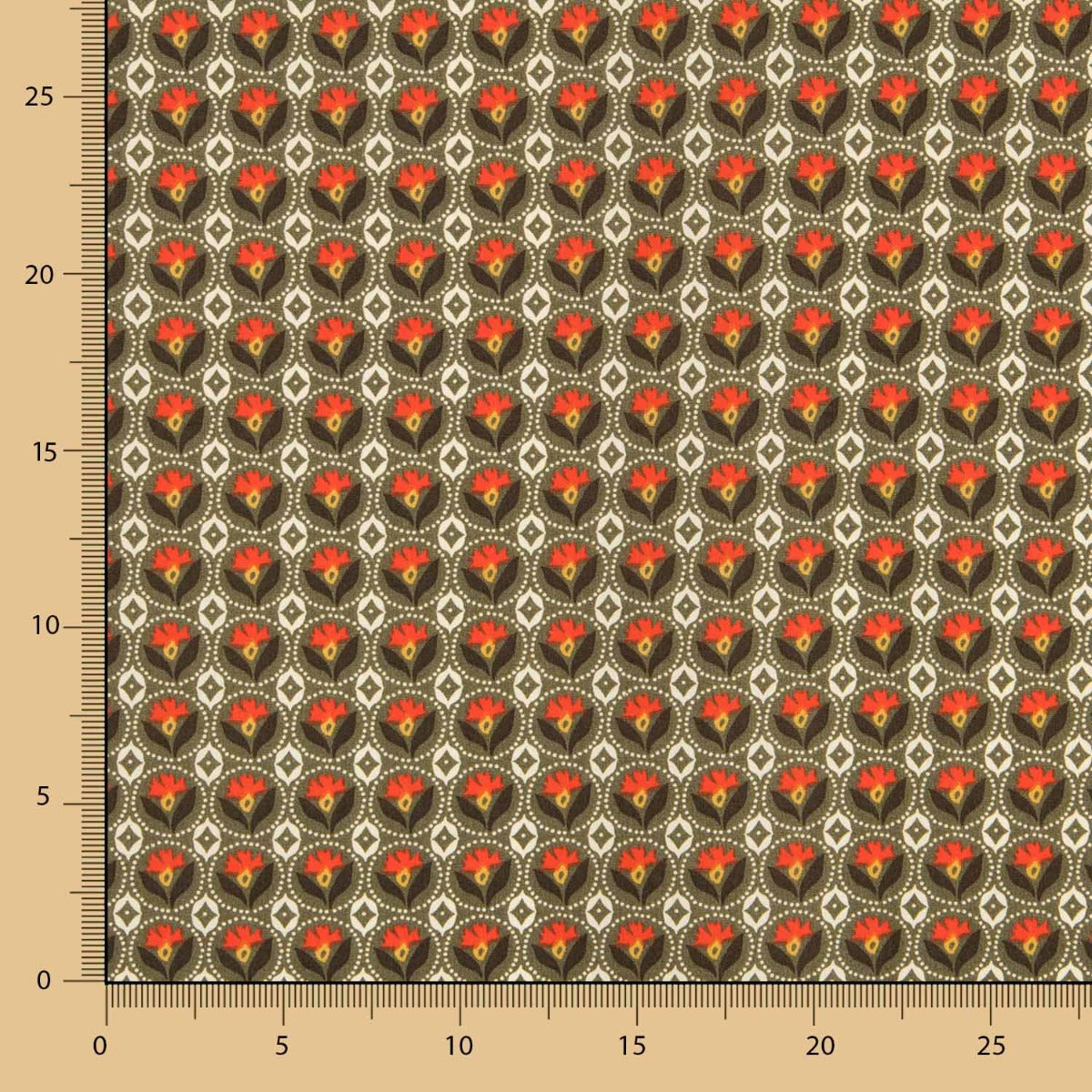Tecido 100% algodão com estampa de flor de lis kaki. A popeline é um tecido de algodão muito versátil, macio, fino e sustentado. Tecido de algodão ideal para acessórios, decoração de casa, patchwork e até máscaras faciais. Sendo um tecido 100% algodão, é preferível lavar antes de manusear o tecido.