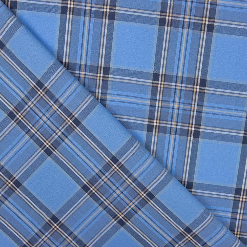 Tejido de camisería 100% algodón premium modelo cuadros azul medio.