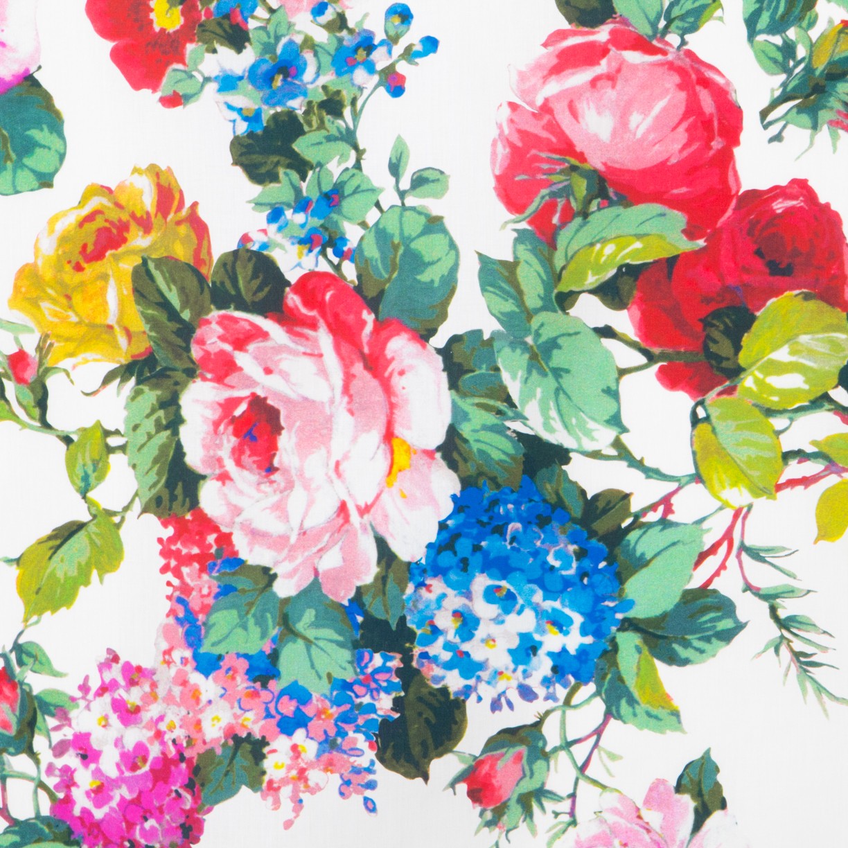 Tela de algodón estampada con flores cretoneras sobre un fondo blanco. Tela de algodón con estampado digital de gran calidad, sostenida, fina y de textura muy suave y agradable. Tela de algodón ideal para la confección de vestidos flamencos.