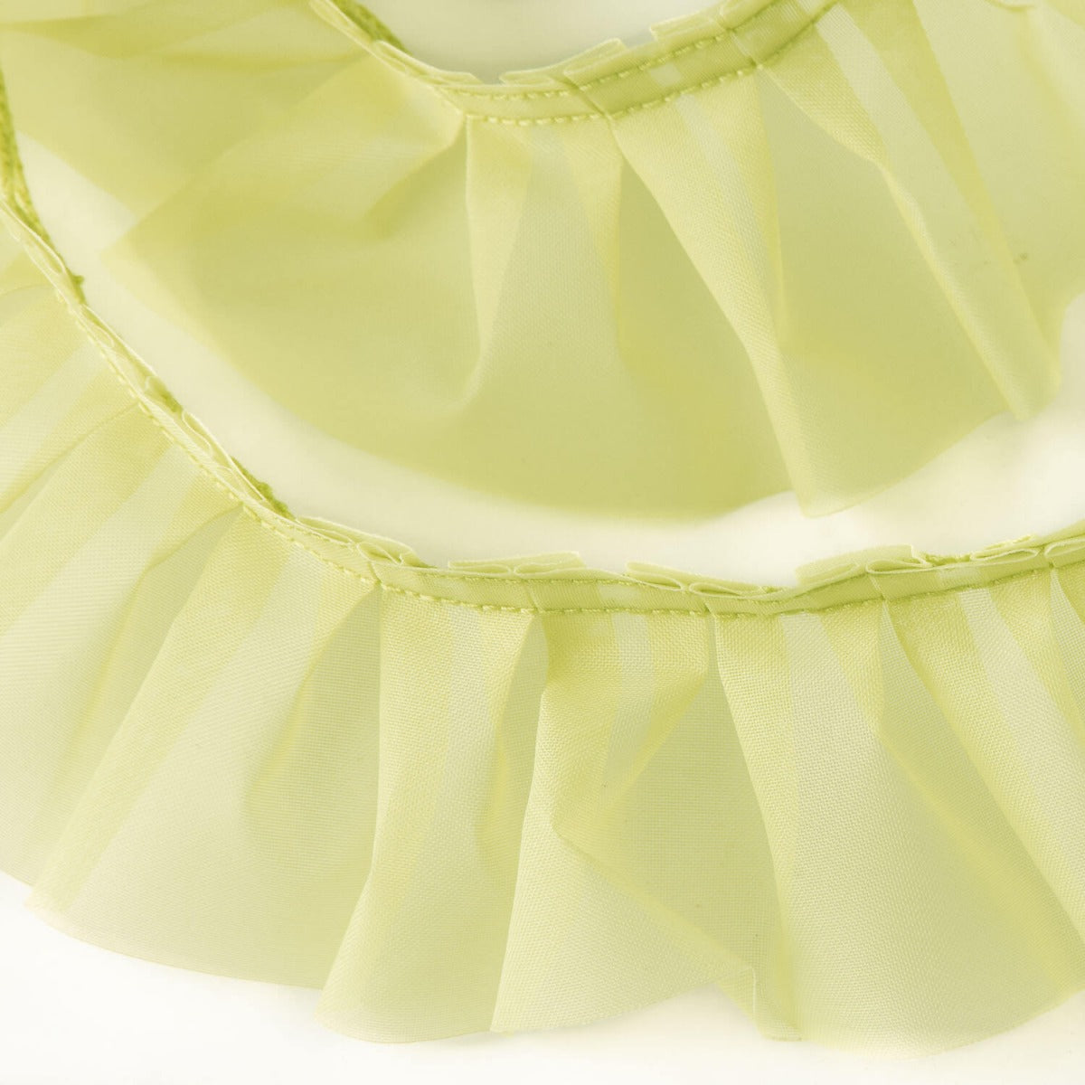 La cinta plisada garrucha en color verde lima es un complemento vibrante y sofisticado, perfecto para aportar dinamismo y frescura a cualquier confección.