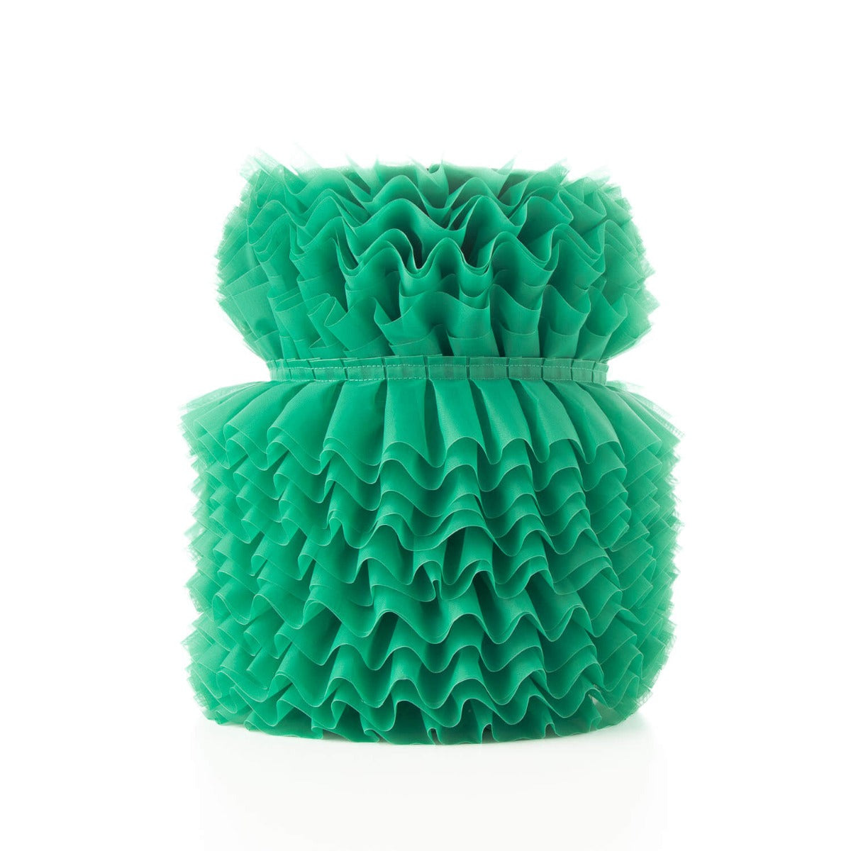 La cinta plisada garrucha en color verde esmeralda es un complemento ideal para realzar cualquier diseño con un toque de sofisticación.
