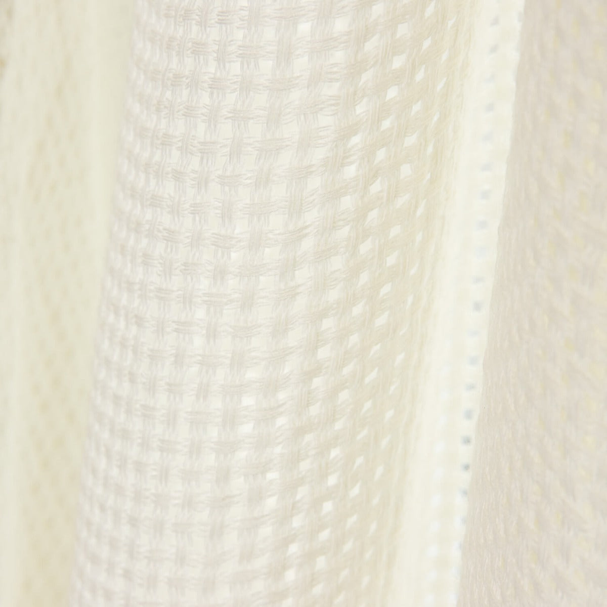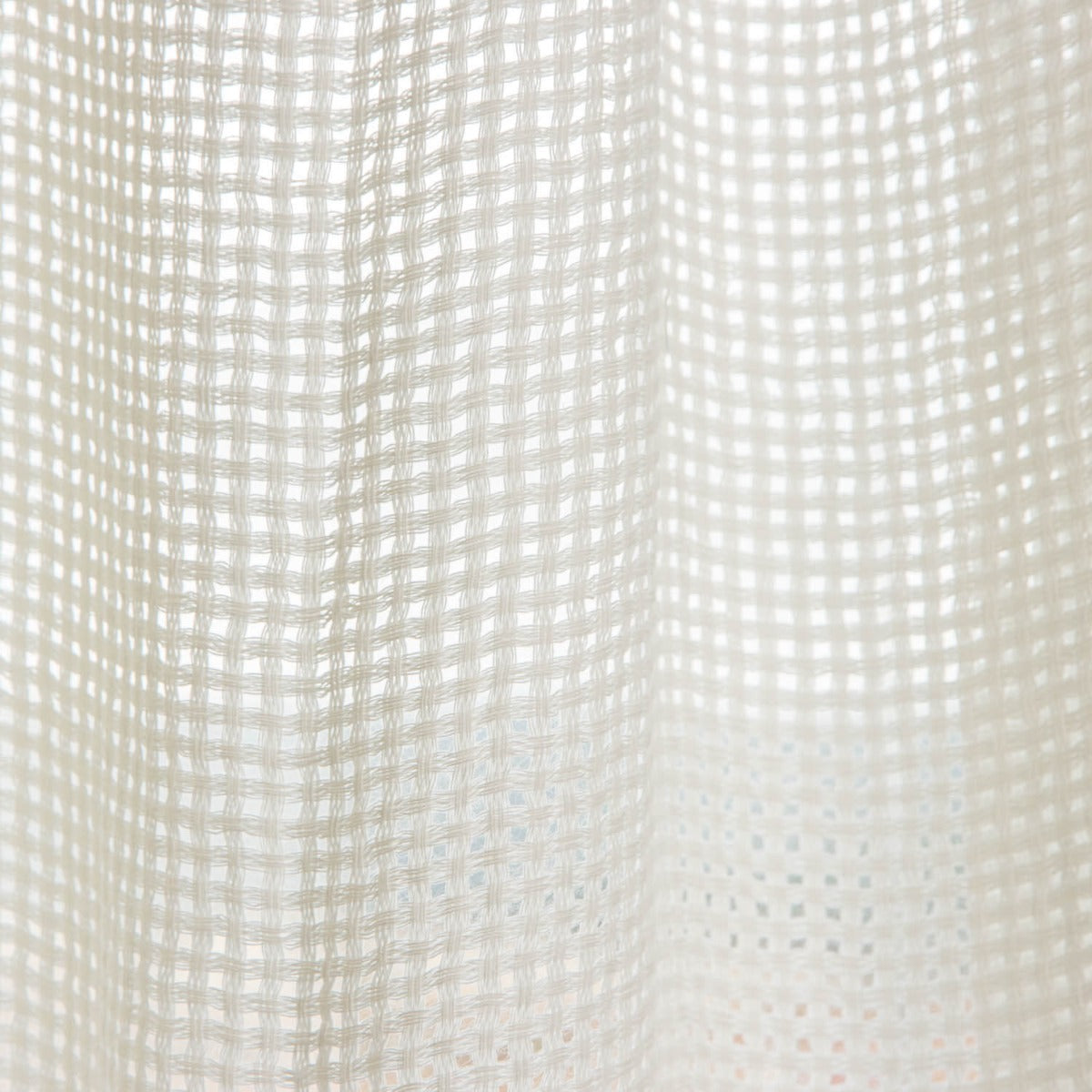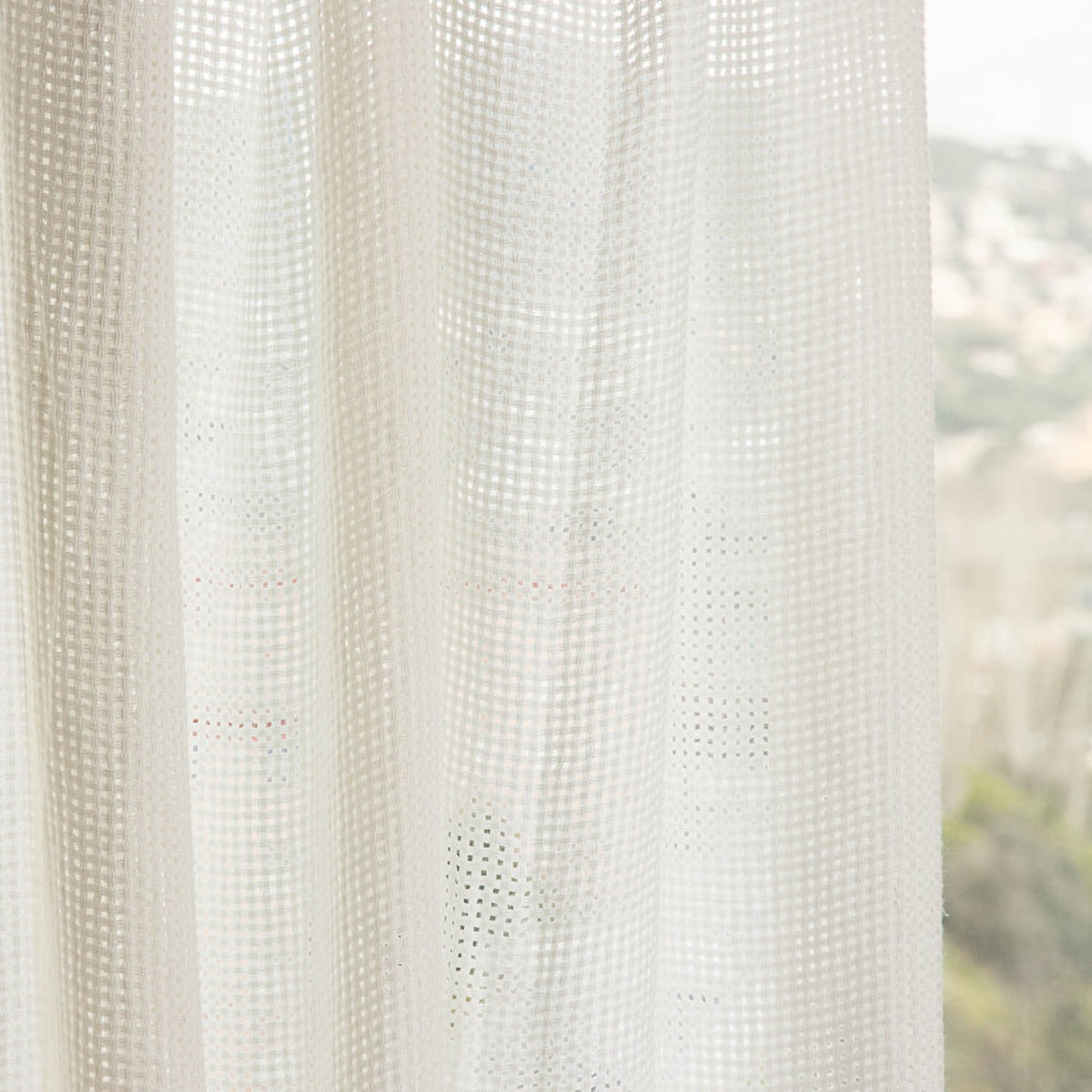 Cortina con un tramado imitando a una red de color blanco natural. Tela de poliéster 100% en un práctico ancho de 280cm. Es una tela de visillo translúcida con buena caída para confección de cortinas. Debido a su composición, es un tejido de muy fácil mantenimiento.
